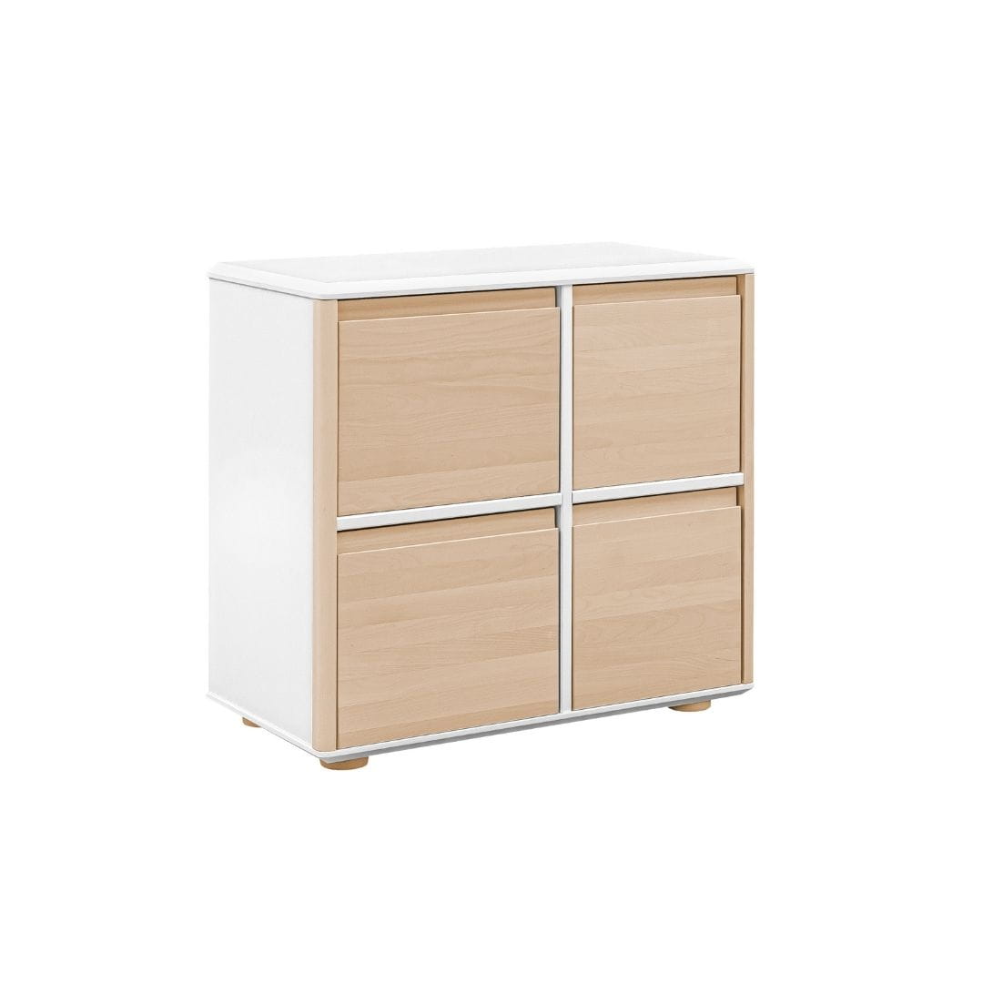 Komoda 4-drzwiowa Funflex to prosty sposób na wprowadzenie do wnętrza dodatkowych opcji przechowywania – pozwala na schowanie wszystkich skarbów na półkach ukrytych za frontami z płyty MDF.