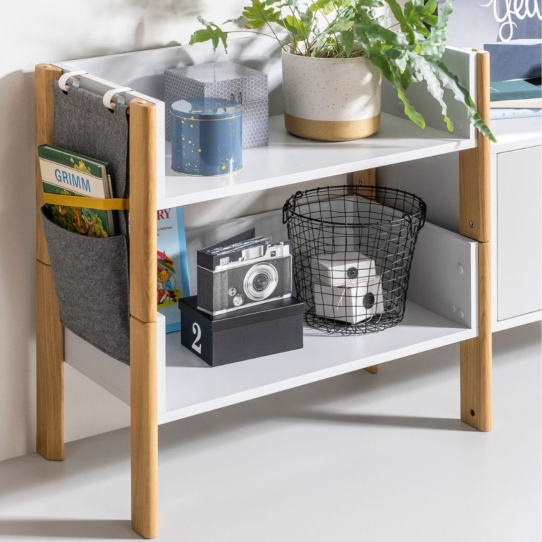Tworzenie regału poprzez zestawienie pół-regałów Nooi jeden na drugim to nie tylko praktyczne, ale także stylowe rozwiązanie. Otwarty regał doskonale sprawdzi się do uporządkowania zabawek, książek i innych drobiazgów.