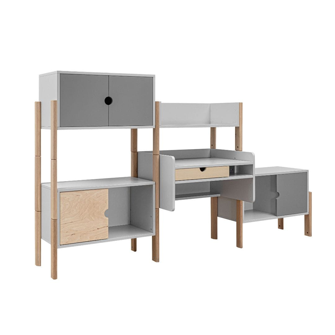 Możesz wybierać spośród pojedynczych mebli, wolnostojących szafek lub gotowych zestawów modułowych z kolekcji Nooi. Stwórz dokładnie taki zestaw mebli, jaki idealnie pasuje do Waszych potrzeb.