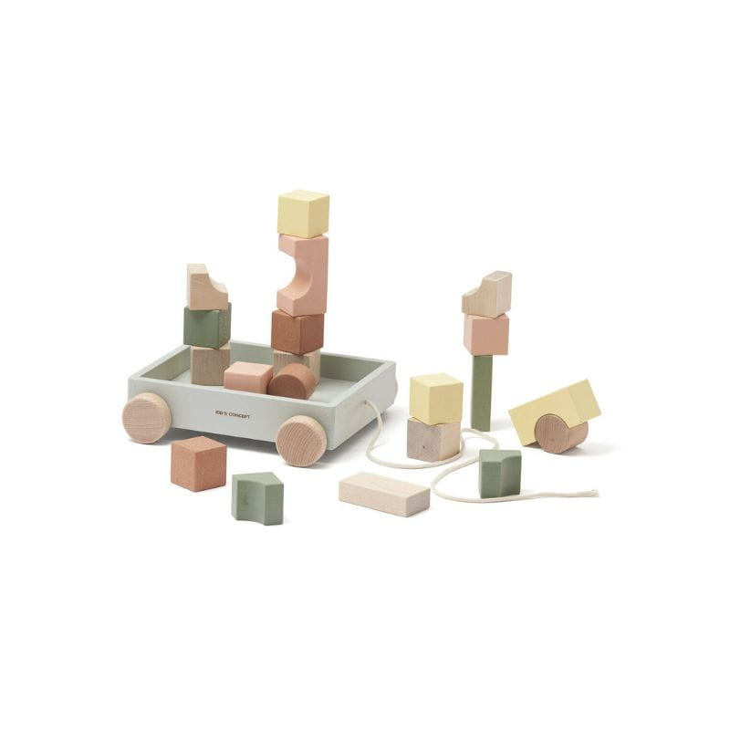 KIDS CONCEPT - WÓZEK DREWNIANY Z KLOCKAMI EDVIN
