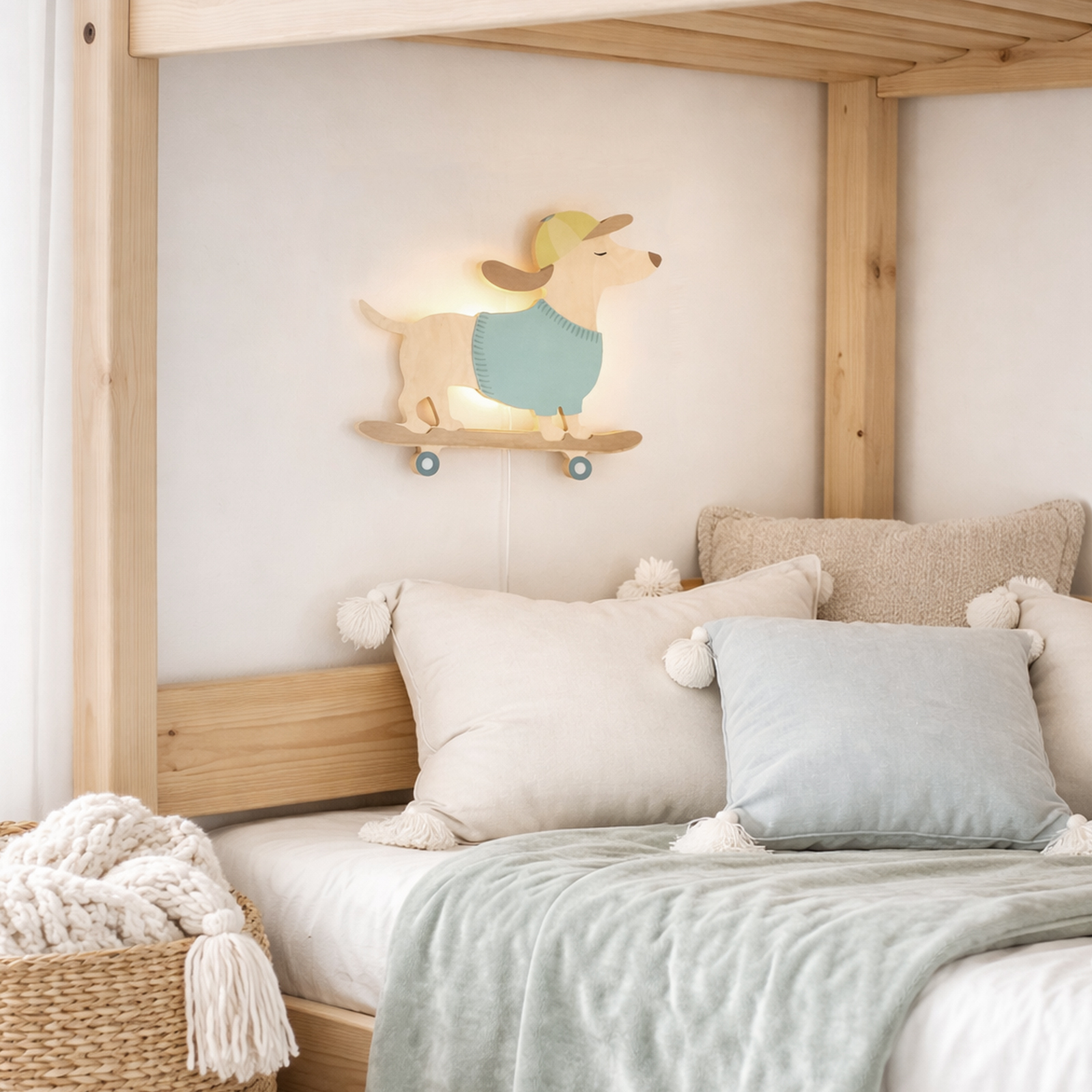 Lampa nocna led na ścianę piesek - pilot ze ściemniaczem