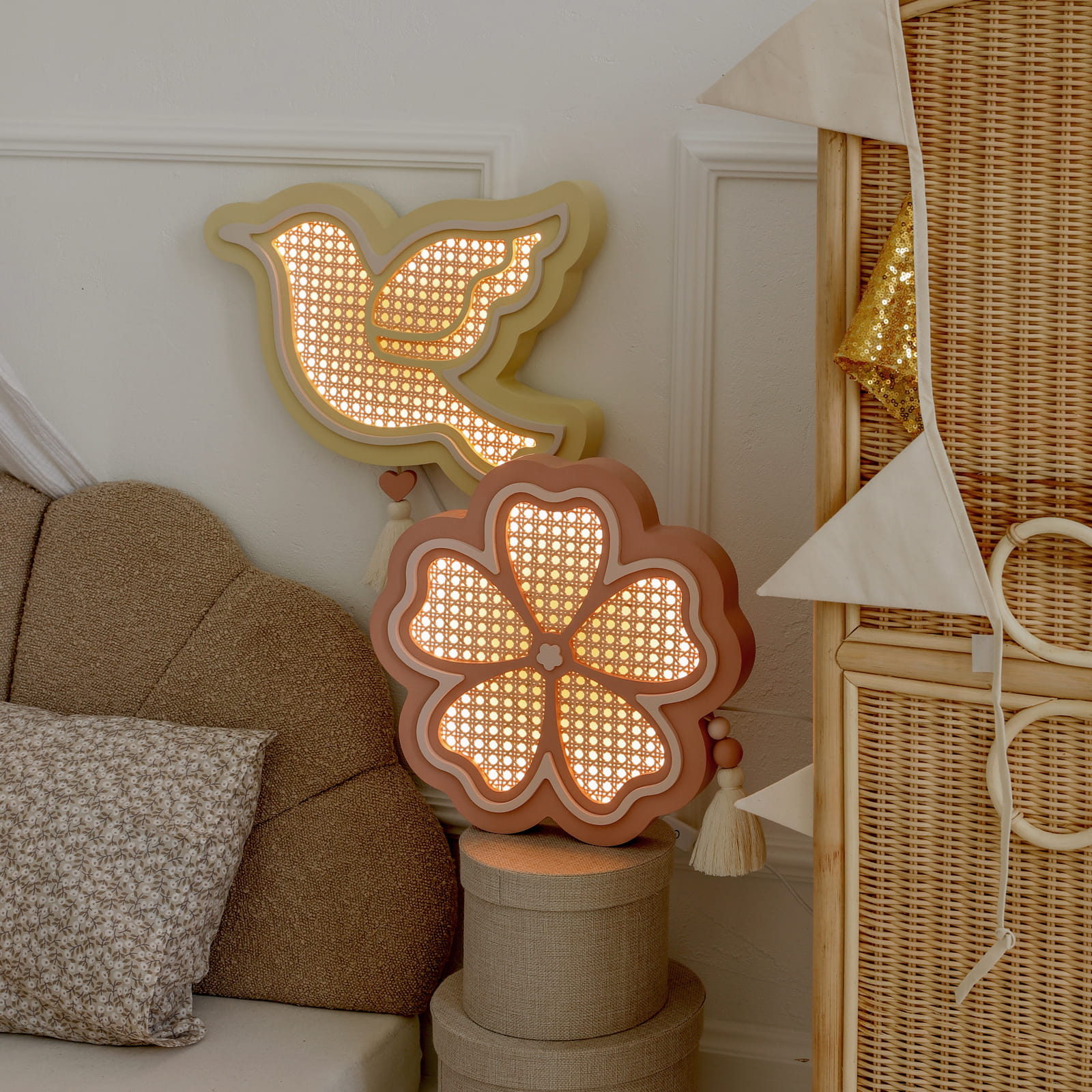 Rozkwitnij światłem! Lampka Kwiatek z rattanem od Lilly & Swan to urocza dekoracja i funkcjonalne źródło światła w jednym. Stworzona z myślą o dzieciach, przenosi do wnętrza nutę natury, spokoju i przytulności.