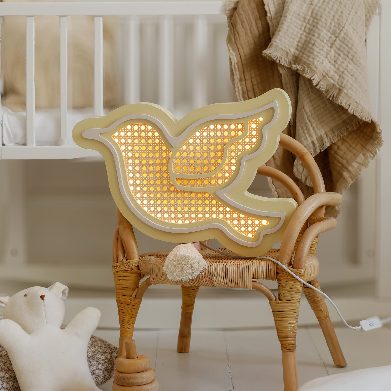 Naturalna, bezpieczna, wykonana z sercem - lampka nocna Ptaszek