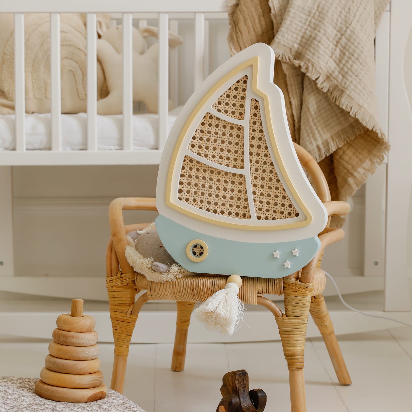 Naturalna, bezpieczna, wykonana z sercem - lampka nocna Żaglówka