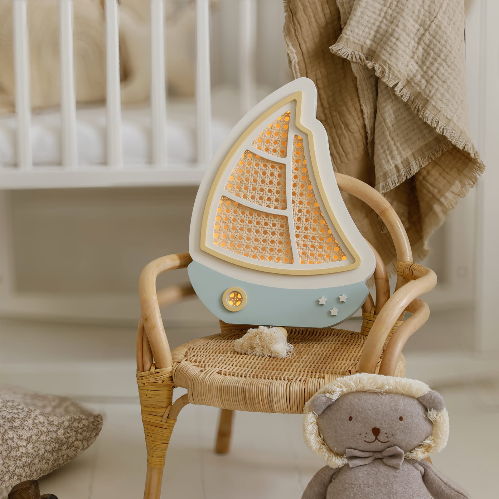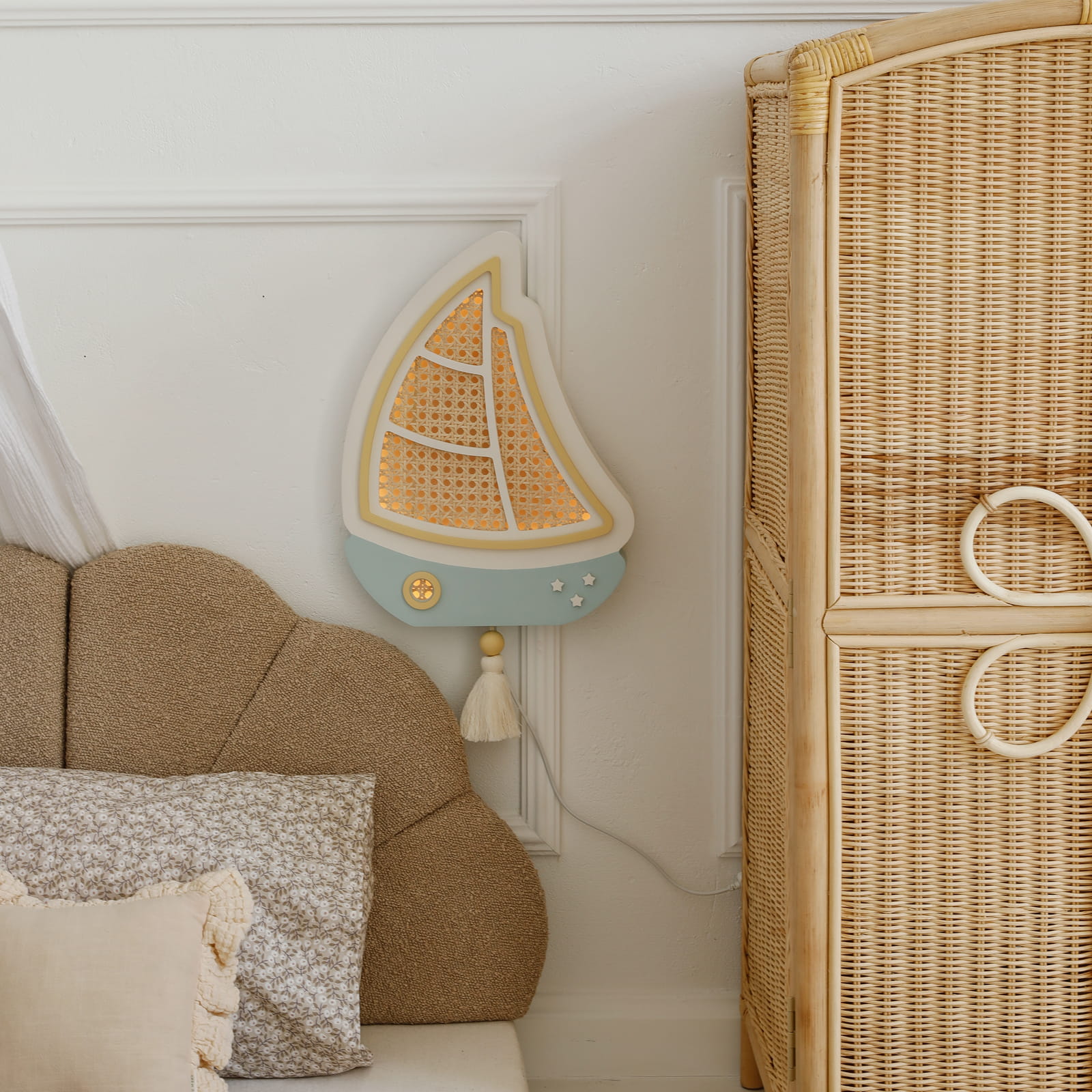Mała żaglówka światła, która wypływa każdej nocy na spokojne morze dziecięcych snów. Lampka Żaglówka od Lilly & Swan to wyjątkowe połączenie funkcjonalnego oświetlenia i subtelnej, marynistycznej dekoracji ściennej – idealnej do pokoju małego odkrywcy lub marzycielki.