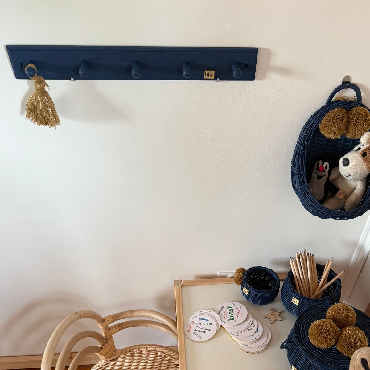 Ten minimalistyczny wieszak z litego drewna to połączenie funkcjonalności i designu. Świetnie sprawdzi się w pokoju dziecka, przedpokoju czy garderobie – wszędzie tam, gdzie liczy się porządek i estetyka.