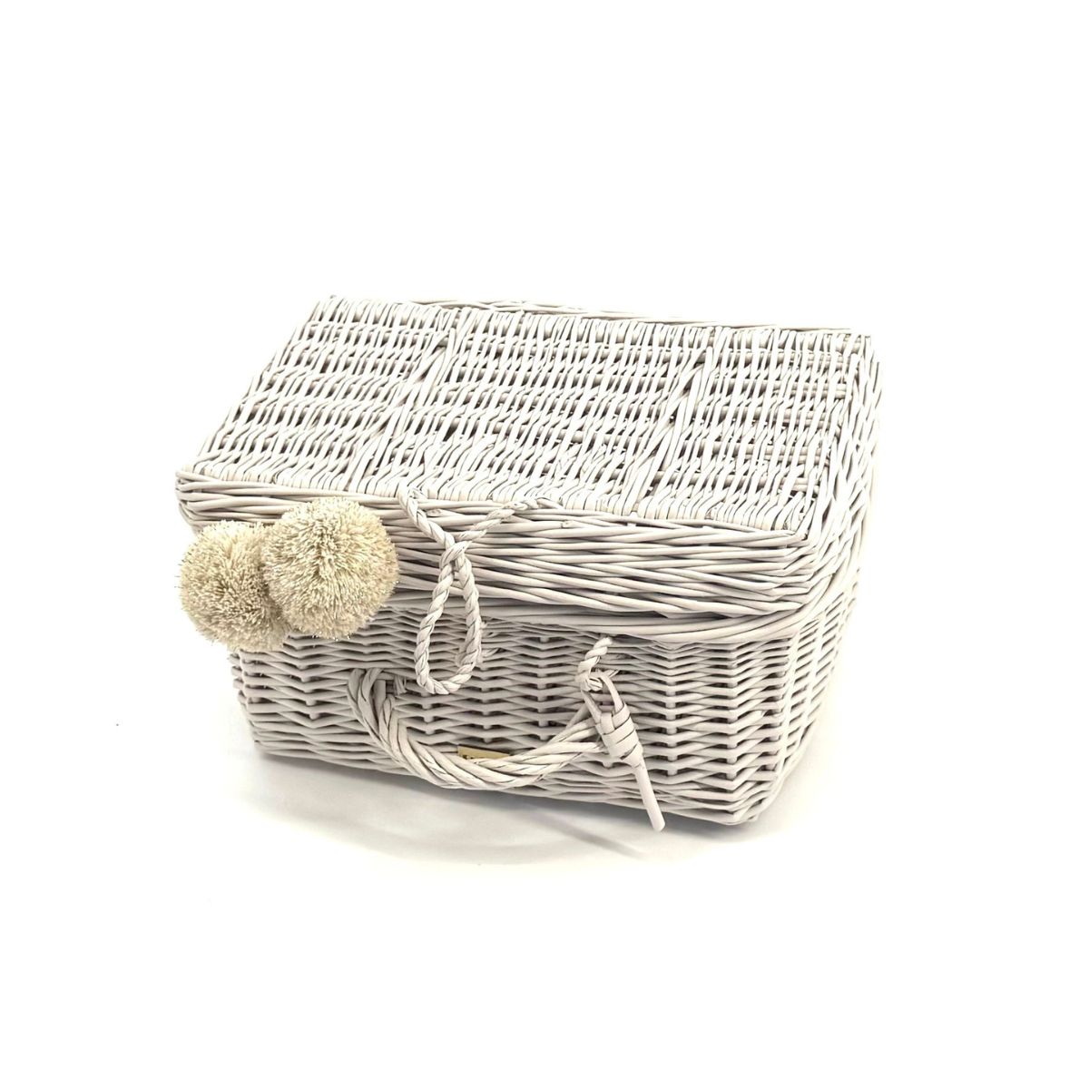Wykonany w Polsce z naturalnej wikliny, łączy w sobie tradycyjne rzemiosło i ponadczasowy design. Delikatnie zaokrąglone kształty, zamykane wieczko oraz wygodny uchwyt sprawiają, że kuferek nie tylko pięknie się prezentuje, ale też jest niezwykle praktyczny. Można go z łatwością zabrać na piknik, do ogrodu, w podróż lub po prostu ustawić w pokoju dziecka – wszędzie będzie wyglądał uroczo i spełniał swoją funkcję.
