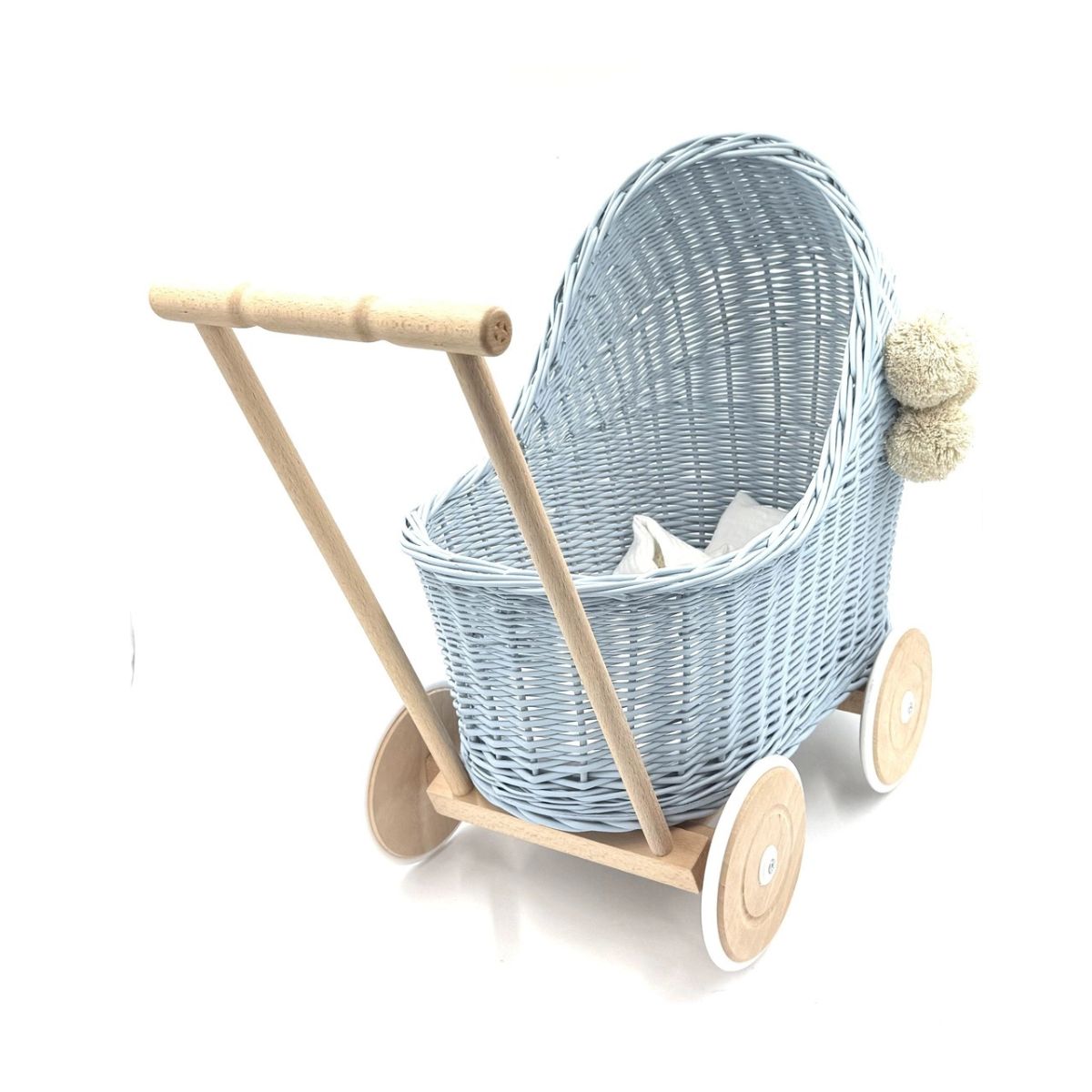 LILU KIDS - WIKLINOWY NISKI WÓZEK DLA LALEK BABY BLUE
