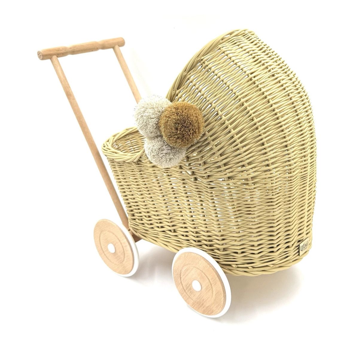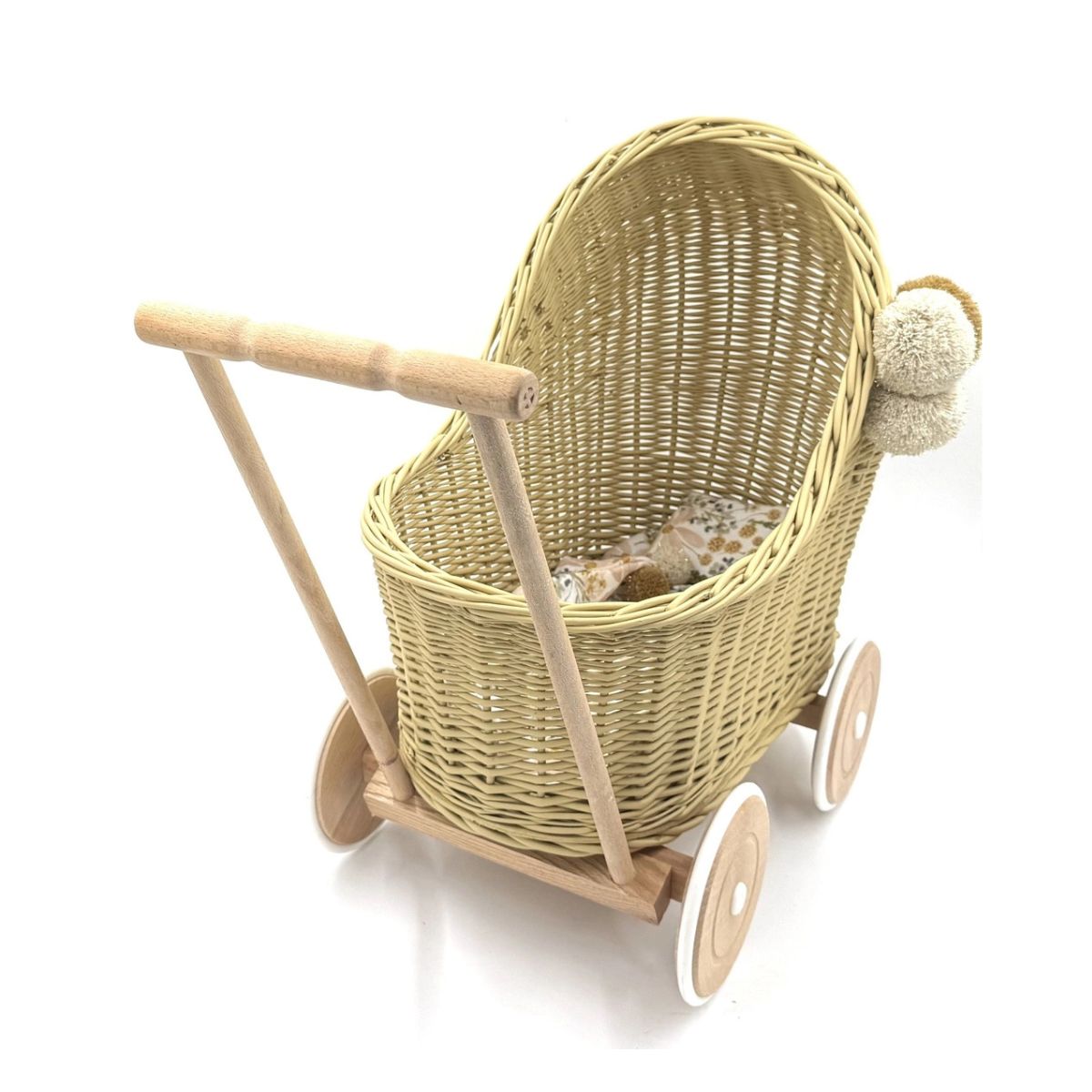 LILU KIDS - WIKLINOWY NISKI WÓZEK DLA LALEK BUTTER