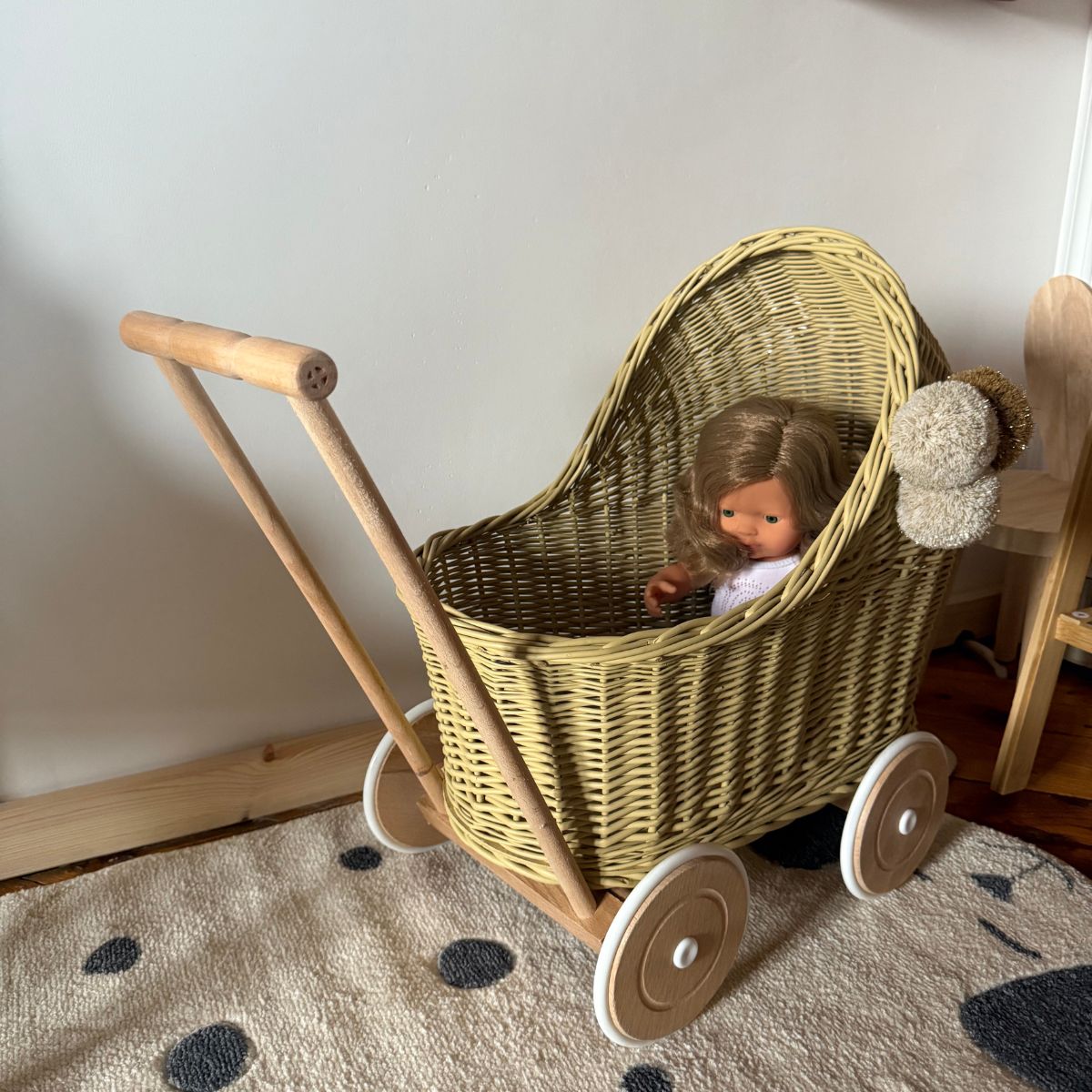 Idealny prezent dla dziecka, które uwielbia zabawę w dom. Ten wózek to nie tylko element zabawy, ale i piękny symbol dzieciństwa – naturalny, delikatny i pełen ciepła.