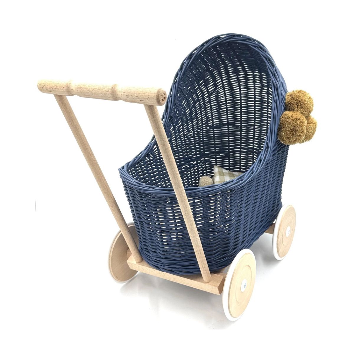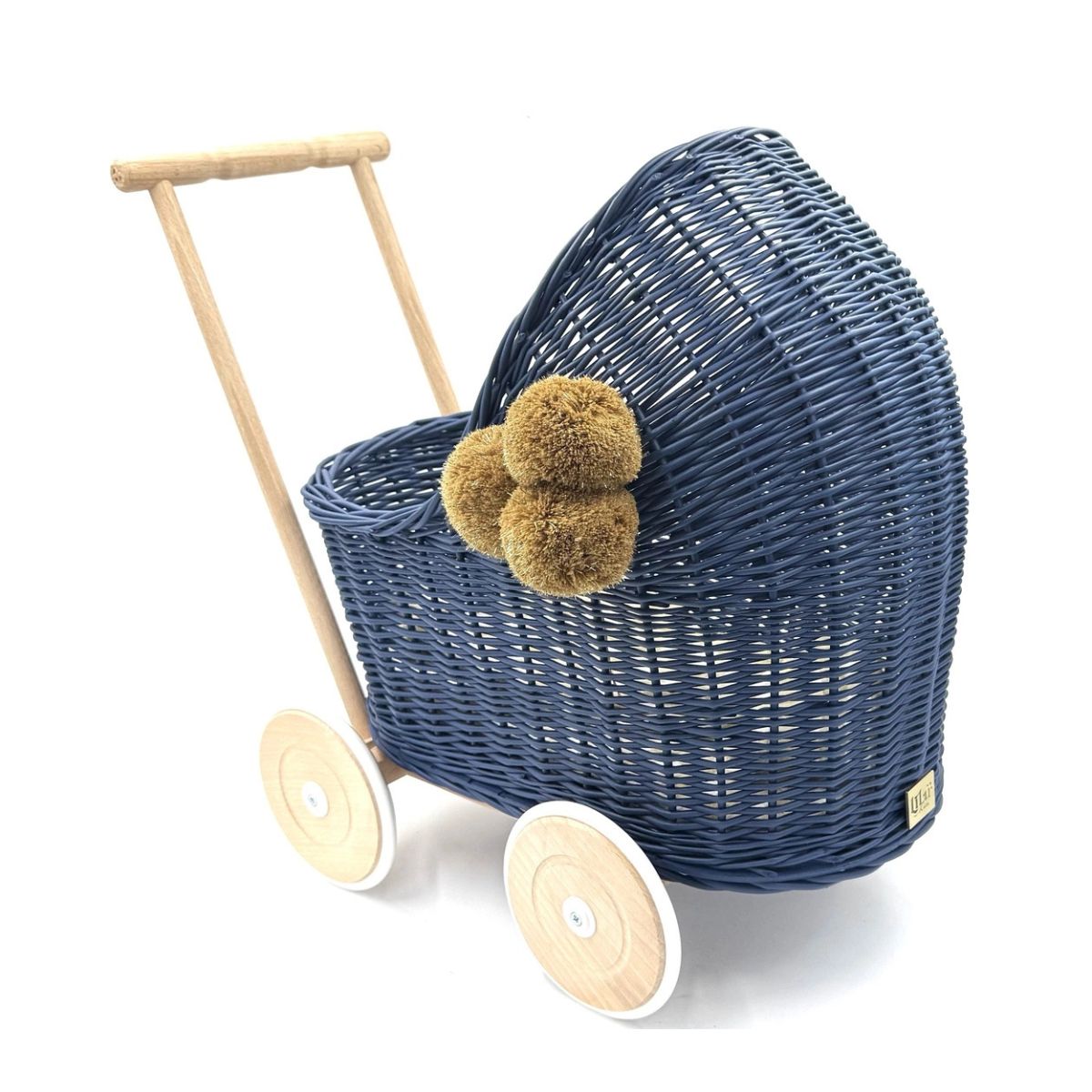 LILU KIDS - WIKLINOWY NISKI WÓZEK DLA LALEK PETROL