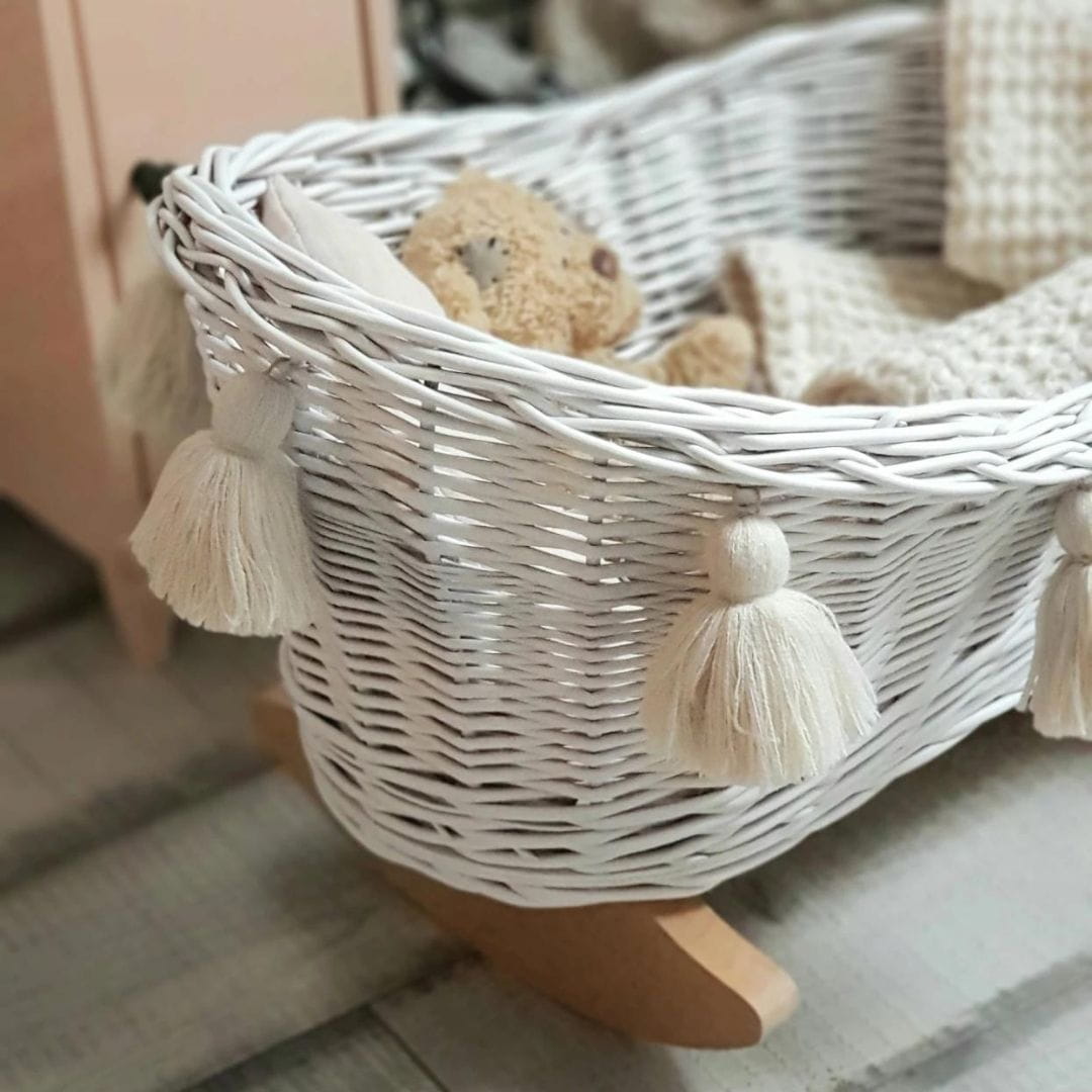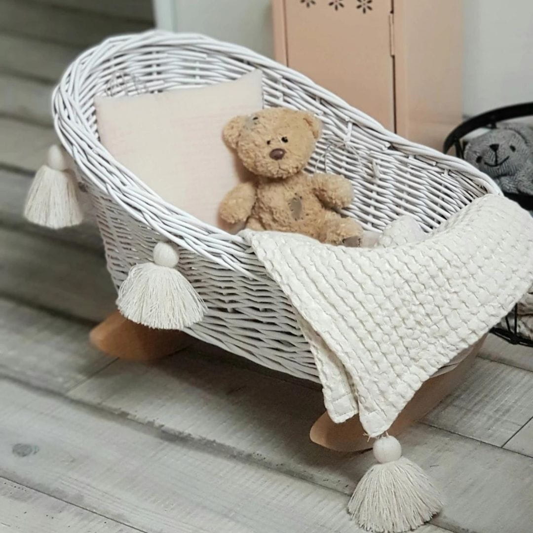 Biała kołyska wiklinowa dla lalek - stylowa i ekologiczna zabawka dla dzieci