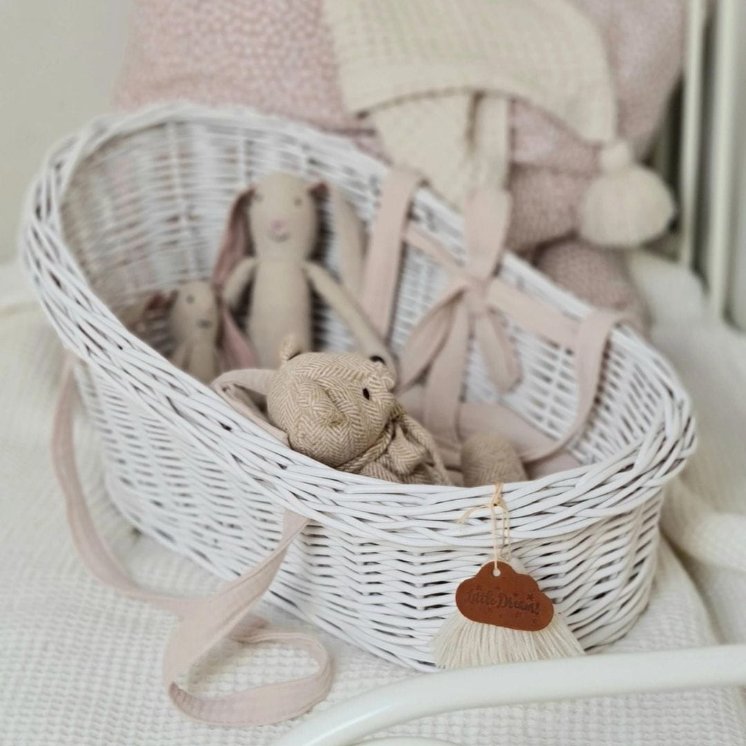 Przepiękne nosidełko wiklinowe dla lalek lub misiów polskiej marki Little Dreams. Nosidełko w całości wykonane ręcznie z najwyższej jakości wikliny, pochodzącej z polskich gospodarstw. Takie łóżeczko dla lalek to wspaniała zabawa dla każdej małej damy, a przy tym w 100% stylowa, ekologiczna i polska zabawka. Sprawdzi się doskonale jako prezent dla dziecka.