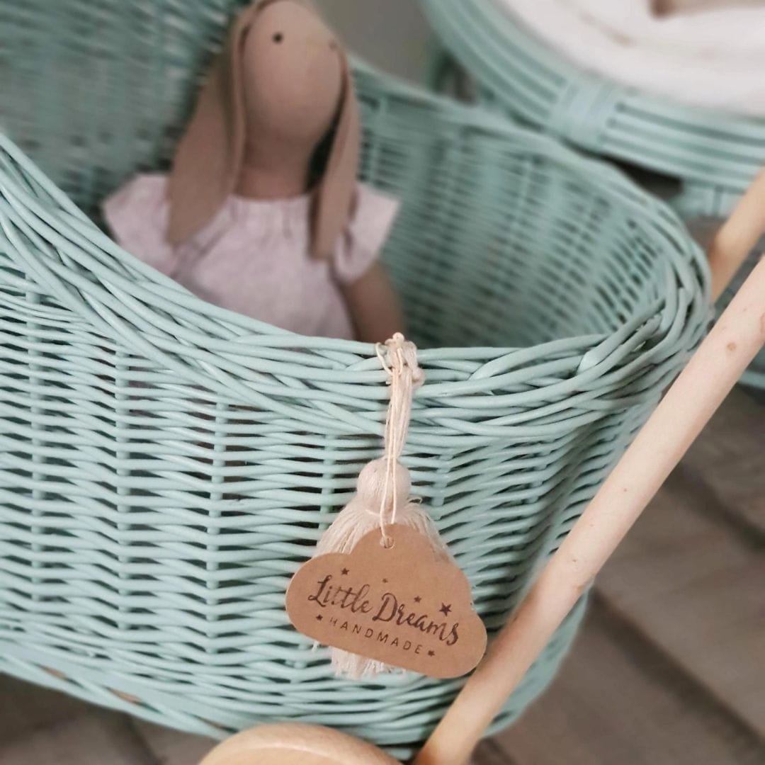 Miętowy wózek dla lalek - stylowa i ekologiczna zabawka dla dziecka
