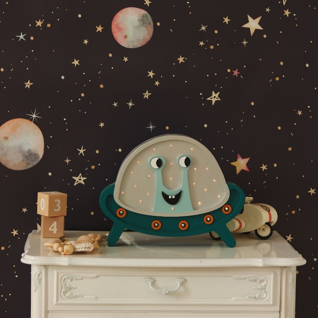 Lampka Little Lights Ufo z pewnością przypadnie do gustu Twojemu dziecku i będzie nie tylko oświetlać wnętrze pokoju, ale też stanowić ciekawy element wystroju pokoiku dla fana kosmosu.