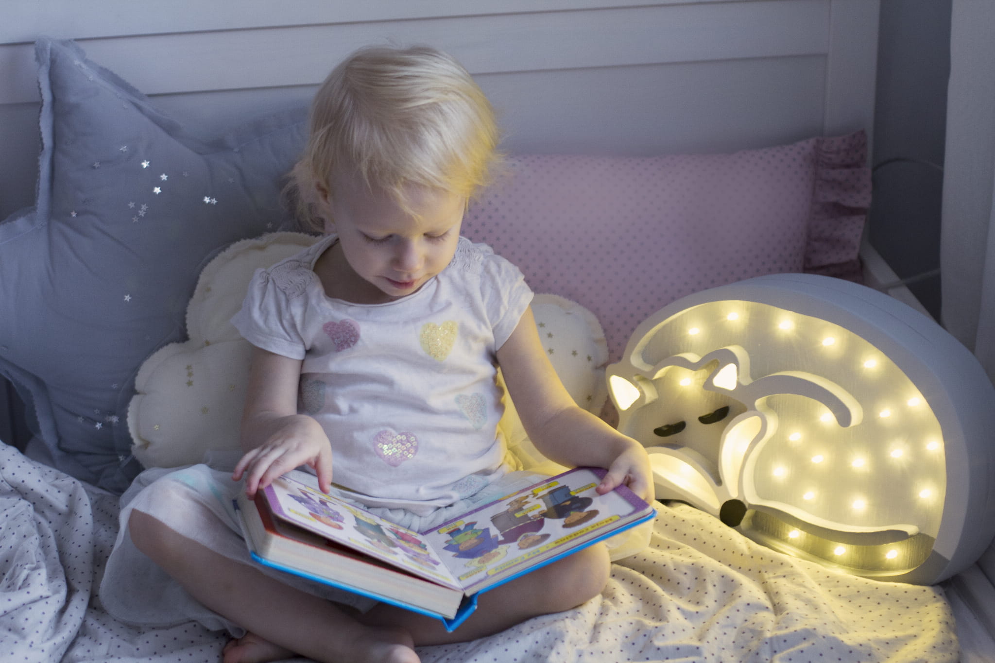 Lampka dla dziecka posiada ściemniacz, dzięki czemu możesz regulować natężenie światła. Możesz więc bawić się w blasku lampy Little Lights, czytać książeczki przed snem, a także zasypiać przy przygaszonym świetle.