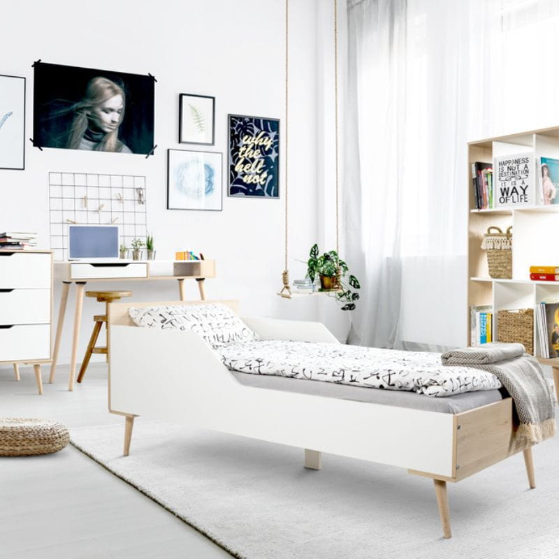 Łóżko młodzieżowe 180x80 cm z kolekcji Sofie w skandynawskim stylu to rozwiązanie dla rodziców ceniących ponadczasowe meble dla dzieci. Naturalna, bukowa kolorystyka ociepli każdy pokój