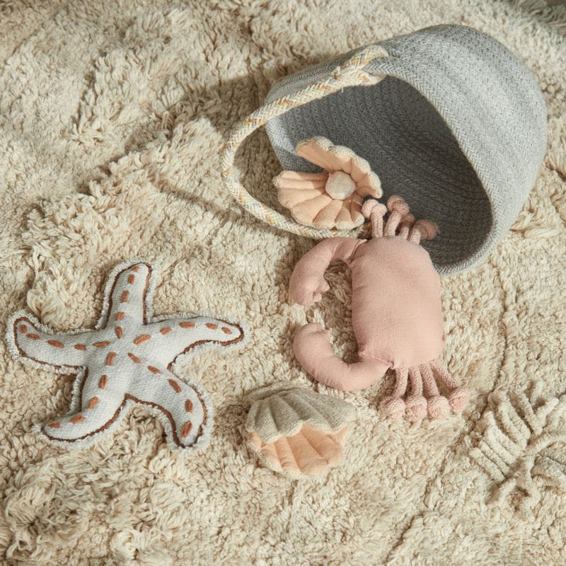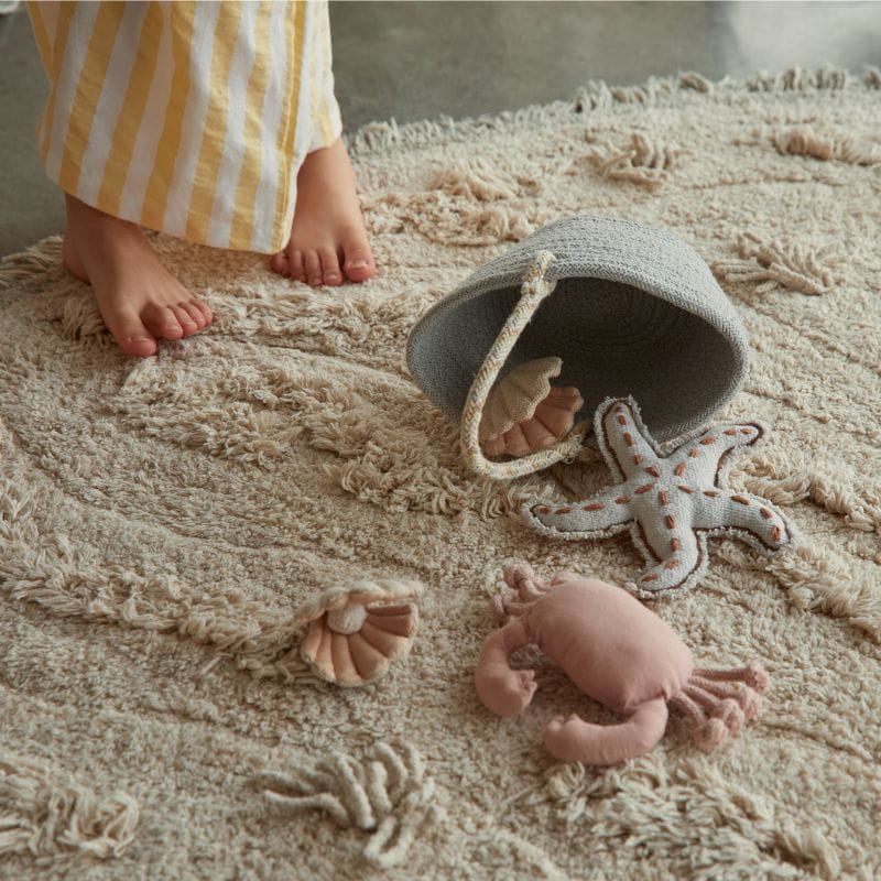 Każdy element kolekcji Sea Wonders to małe dzieło sztuki, które przyciąga wzrok swoim niepowtarzalnym stylem i wysoką jakością wykonania. Kolekcja oferuje szeroki wybór dywanów z akcesoriami do zabawy, puf, koszy, zabawek i innych produktów, które wspaniale komponują się ze sobą, tworząc unikalne aranżacje i wprowadzając do domu morską atmosferę.