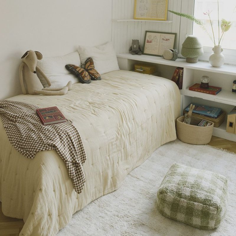 W Tuliroom wierzymy, że luksus musi iść w parze z funkcjonalnością. Mimo jasnego koloru, dywan Vichy Ivory jest niezwykle praktyczny – dzięki zastosowaniu wysokogatunkowej bawełny, możesz go bez obaw prać w domowej pralce. To gwarancja nieskazitelnej czystości i bezpiecznego środowiska dla Twojego malucha. Dywan tworzy perfekcyjny zestaw z pufem i dodatkami z tej samej serii, pozwalając Ci wyczarować spójne wnętrze, które zachwyca od pierwszego spojrzenia.