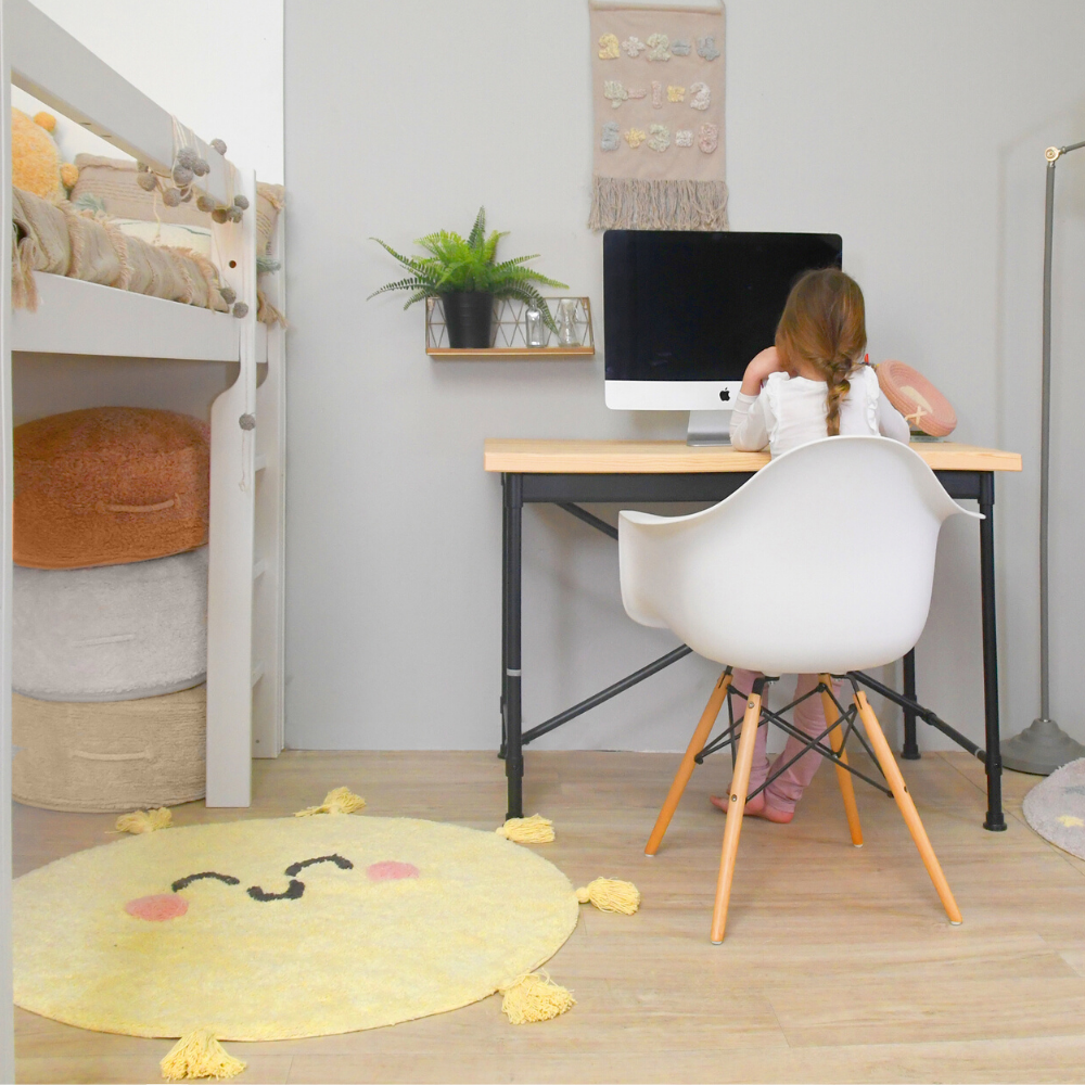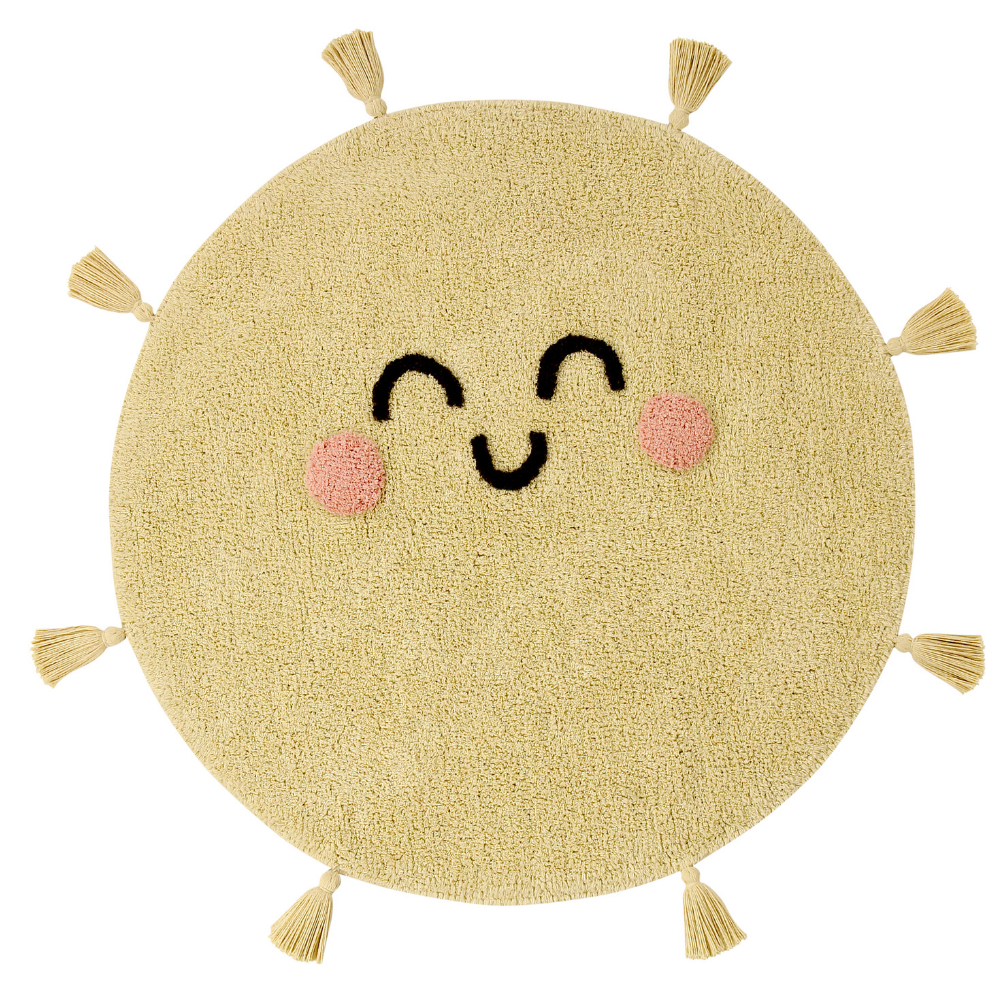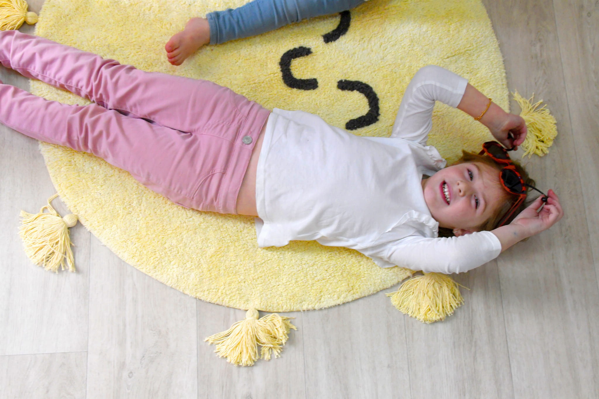 Dywan dziecięcy Sunshine wniesie dużo radości do pokoju Twojej pociechy. Uśmiechnięte słoneczko sprawi, że każdy poranek będziecie witać w doskonałym nastroju i z dużą dawką pozytywnej energii. Ręcznie tkana bawełna organiczna w jasnym odcieniu żółci z detalami w kolorze czerni i różu będzie pasowała do pokoi niemowlęcych oraz bawialni dla starszych dzieci.
