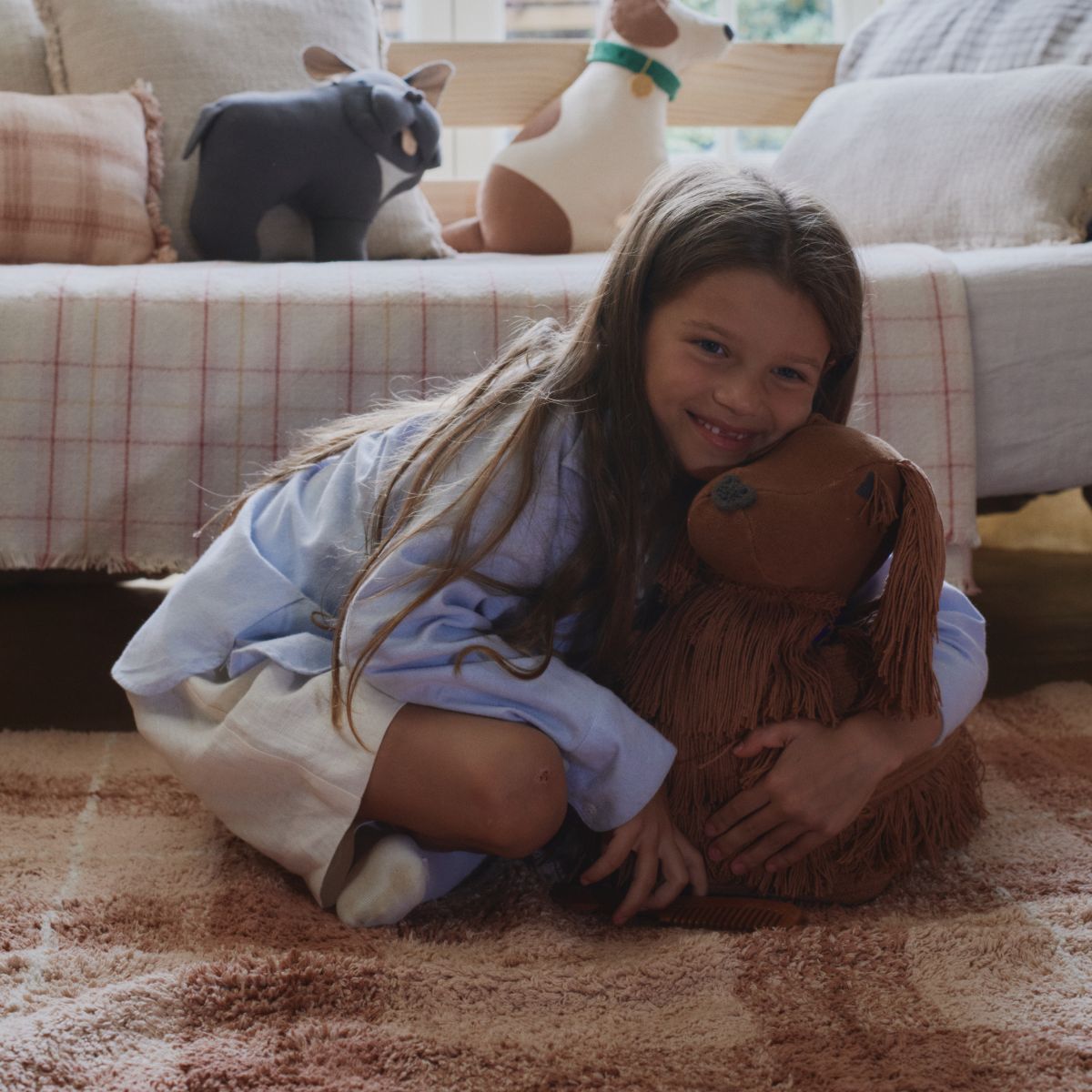 Wprowadź odrobinę brytyjskiego stylu do pokoju swojego dziecka dzięki dywanikowi w kratę! Ten ręcznie wykonany, bawełniany dywanik odtwarza klasyczny wzór kratki przy użyciu tradycyjnej techniki tuftingu, nadając wnętrzu elegancki, a jednocześnie przytulny charakter. Starannie rozmieszczone frędzle dodają lekkości i uroku, a lekka, elastyczna konstrukcja sprawia, że dywanik można prać w pralce i zachować jego idealny wygląd na lata.