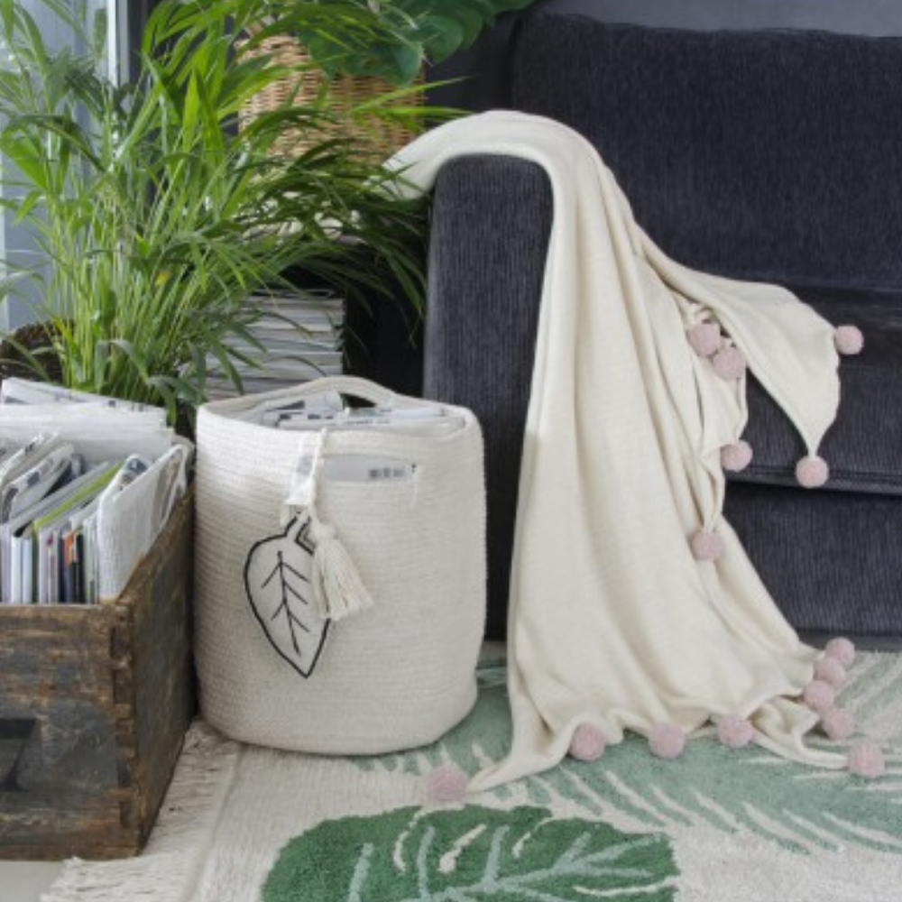 Bawełniany kosz dekoracyjny marki Lorena Canals to doskonały sposób na dodatkowe miejsce do przechowywania zabawek, książek, kocyków, a nawet roślin. Ręcznie wykonany listek i mały pomponik dodają mu wyjątkowego uroku, wprowadzając do wnętrza przyjemny, subtelny akcent dekoracyjny.