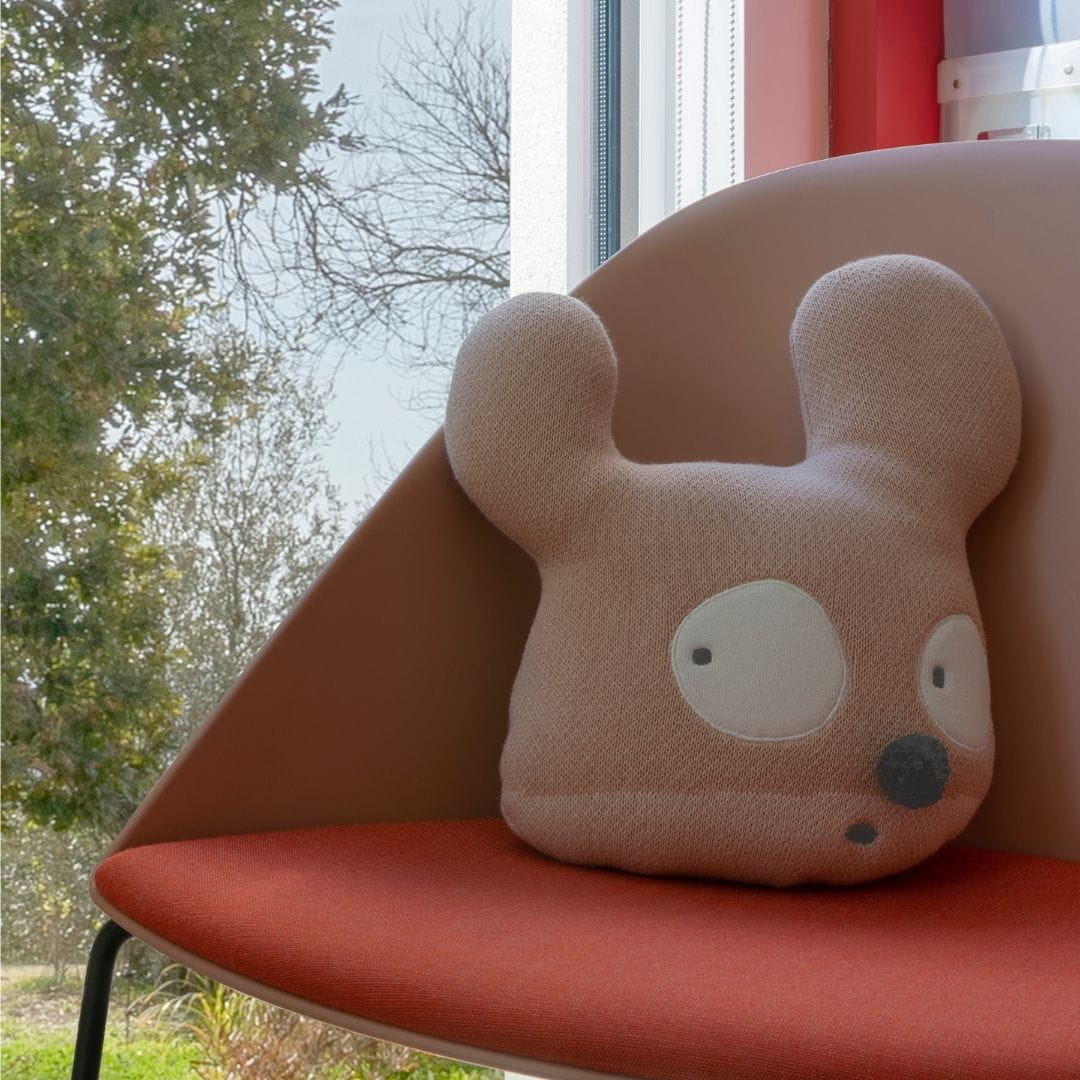 Kto nie chce być czasem superbohaterem? Poduszka do pokoju dziecka Miss Mighty Mouse ma kształt postaci z grafiki Edgara Plansa. Wykonana jest z miękkiej bawełny w odcieniach różu z bawełnianym pomponem, który odstaje niczym nos. W rogu poduszki znajduje się ręcznie wyszyty podpis artysty.