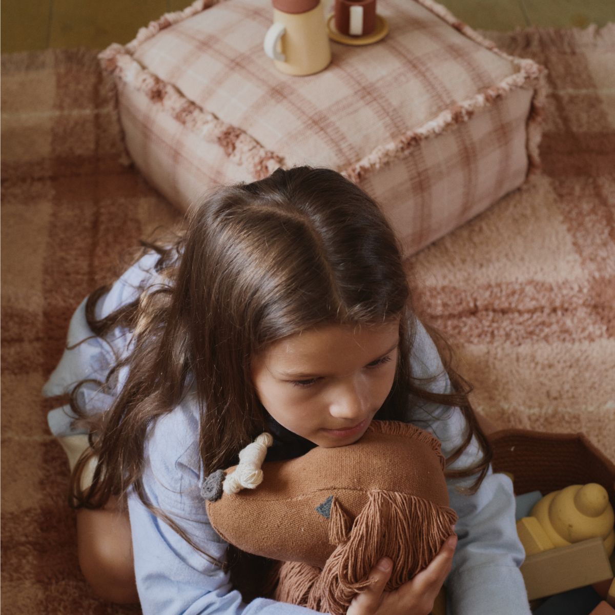 Pufa Handloom w szkocką kratę to połączenie praktyczności, komfortu i stylu. Idealna do pokoju dziecięcego, dodaje wnętrzu przytulnego charakteru, stając się zarówno miejscem zabawy, jak i dekoracyjnym akcentem domu.