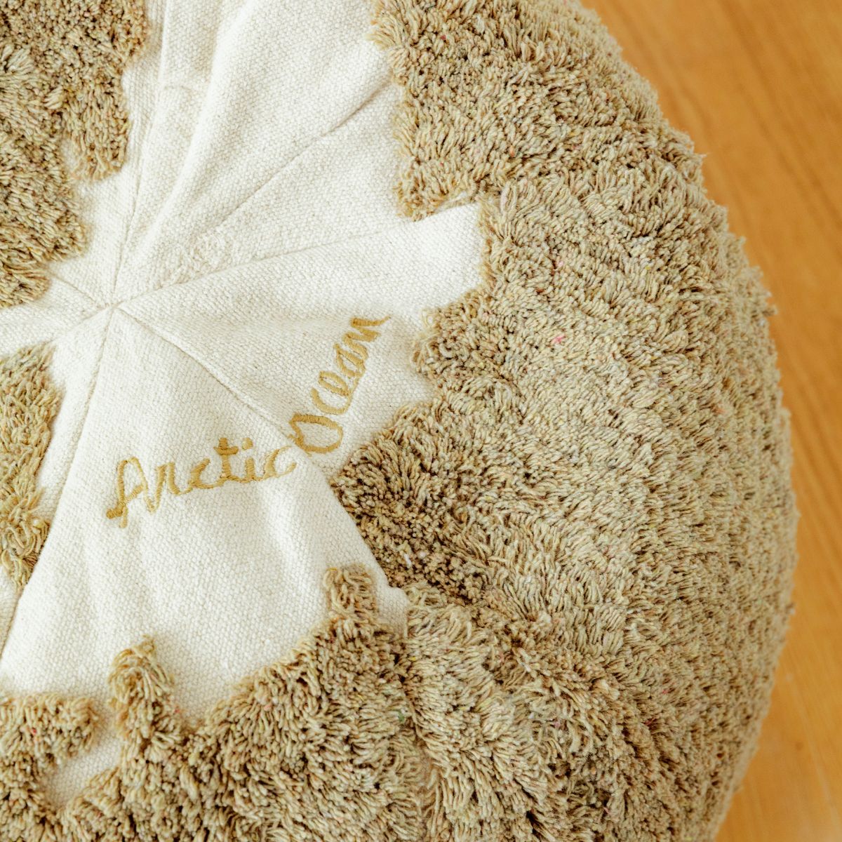 Odkryj świat w zgodzie z naturą dzięki pufie Mapa Świata, stworzonej z pozostałości materiałów dywanowych. To wyjątkowe podejście do recyklingu – przędza barwiona oddzielnie, aby uniknąć niepożądanych mieszanych kolorów, nadaje każdej pufie unikalny, naturalny odcień. Wykończona recyklingowanym płótnem, pufa to miękki, ekologiczny wybór, który wnosi do wnętrza zarówno funkcjonalność, jak i zabawę.