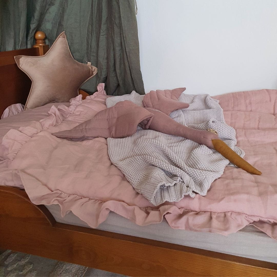 Lniany bocian to oryginalna ozdoba do zawieszenia w pokoju malucha. Idealny jako dodatek do aranżacji wnętrza dla dzieci. Nada niepowtarzalnego uroku i lekkości każdemu pokoikowi dziecięcemu.