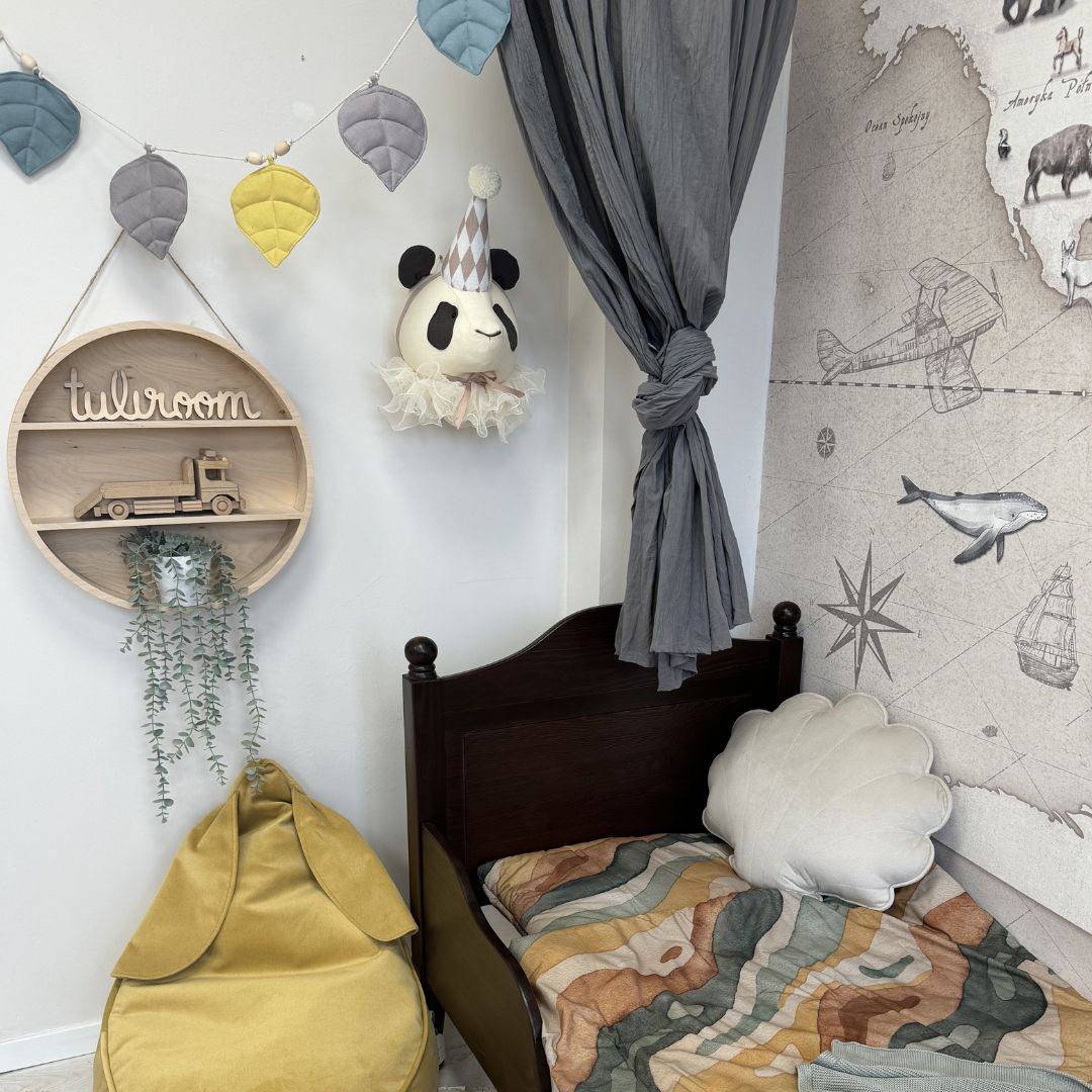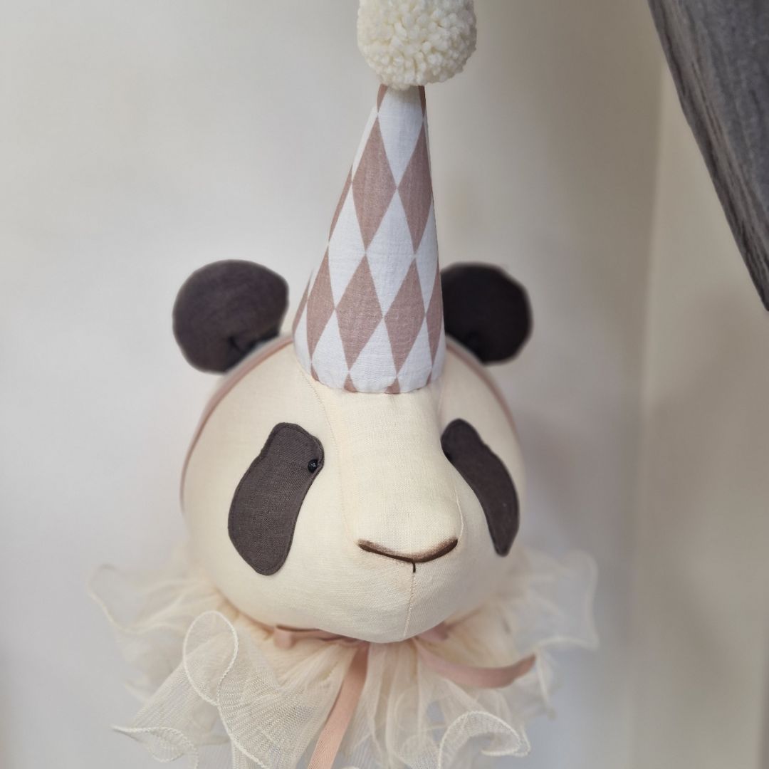 Lniana panda na ścianę - oryginalna ozdoba pokoju dziecka