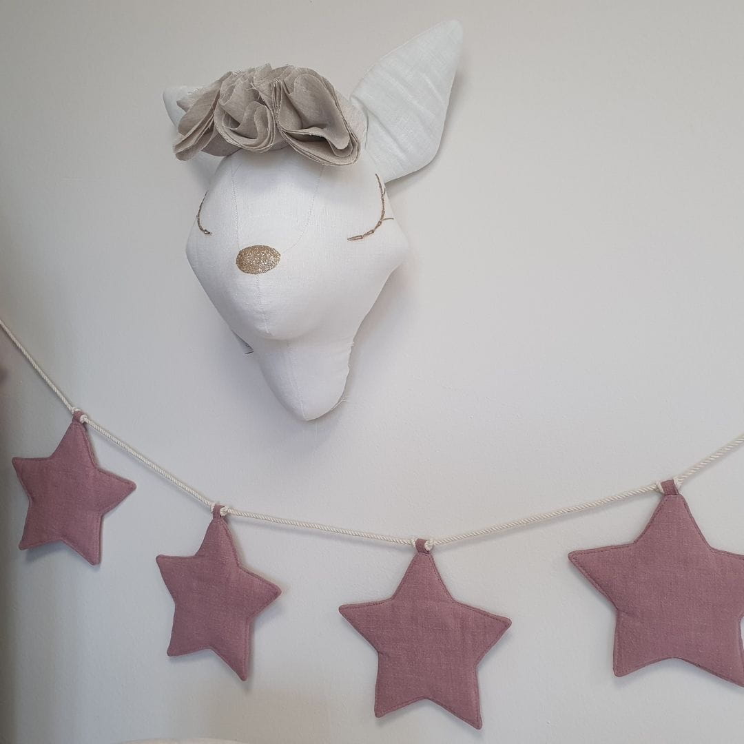 Lniana sarenka z kwiatami idealny jako dodatek do aranżacji wnętrza dla dzieci. Nada niepowtarzalnego uroku i lekkości każdemu pokoikowi dziecięcemu.