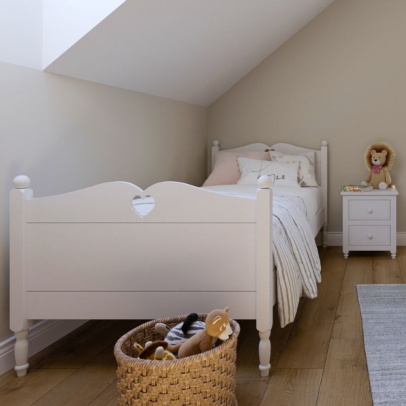 Kolekcja BELLA zachwyca świeżością i lekkością formy. To, co nadaje jej niepowtarzalny charakter, to subtelne zdobienie w kształcie serca umieszczone na szczytach łóżka. Te dopracowane detale sprawiają, że bryła mebla wygląda szlachetnie i lekko, idealnie komponując się z tekstyliami w pastelowych odcieniach. Dzięki swojej uniwersalności, łóżko Bella z łatwością dopasuje się do zmieniających się gustów Twojego dziecka.