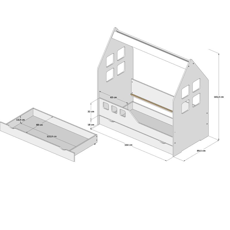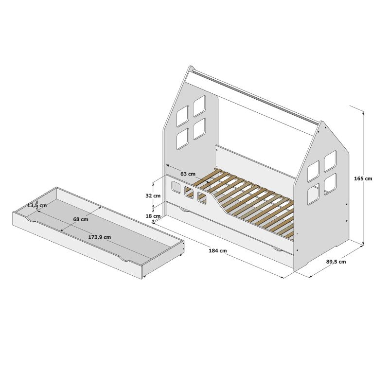Łóżko domek z szufladami - opcja dodatkowa