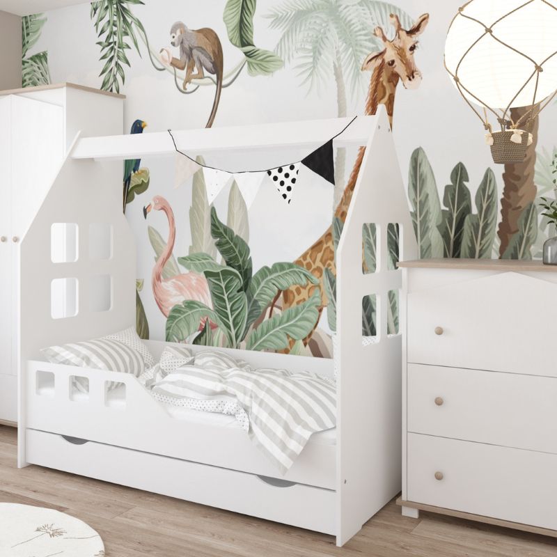 Białe wykończenie i minimalistyczna bryła wpisują się w najnowsze trendy stylu skandynawskiego. Dzięki prostej konstrukcji łóżko domek Olaf doskonale komponuje się z kolorowymi dodatkami, tekstyliami i zabawkami, stanowiąc elegancką bazę aranżacyjną na lata. To wybór dla rodziców, którzy cenią meble estetyczne, trwałe i funkcjonalne.
