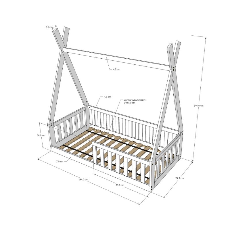 Szukasz mebla, który zmieni pokój Twojego malucha w krainę przygód, a jednocześnie zadba o jego zdrowy wypoczynek? Łóżko Tipi to unikalne połączenie funkcjonalności z modnym stylem skandynawskim. Dzięki konstrukcji przypominającej namiot, mebel ten staje się nie tylko miejscem do spania, ale też bazą do kreatywnej zabawy, pobudzającą wyobraźnię Twojej pociechy każdego dnia.