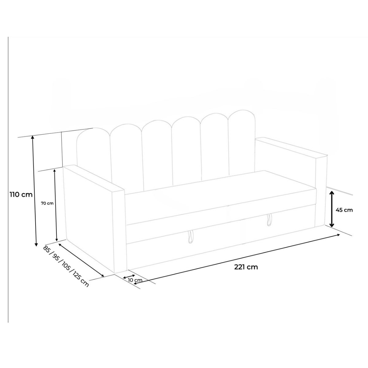 - szerokość całkowita: 85 / 95 / 105 / 125 cm