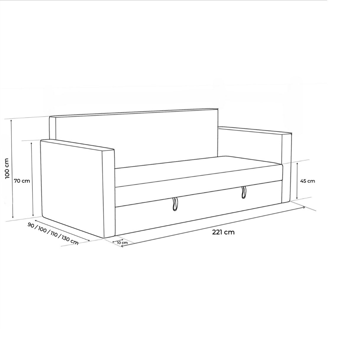 - szerokość całkowita: 90 / 100 / 105 / 130 cm