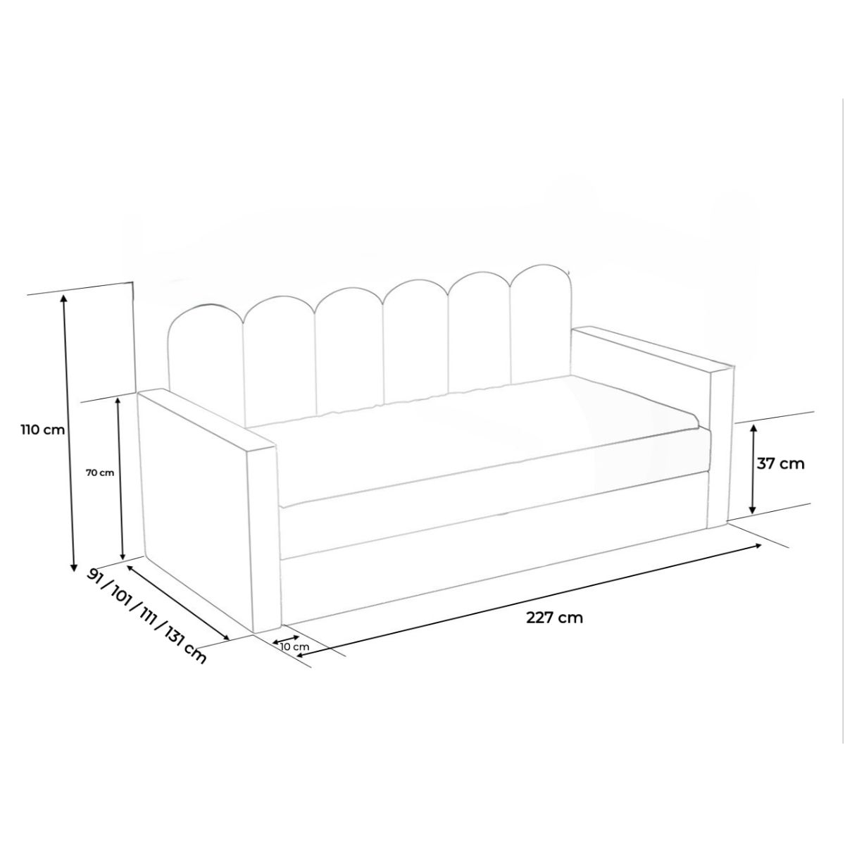 Dopasuj łóżko do stylu i potrzeb dziecka, wybierając jedną z dostępnych wysokości wezgłowia: 80, 90, 100 lub 110 cm. To idealne rozwiązanie, by stworzyć zarówno przytulny kącik do snu, jak i wygodne miejsce do czytania czy odpoczynku.