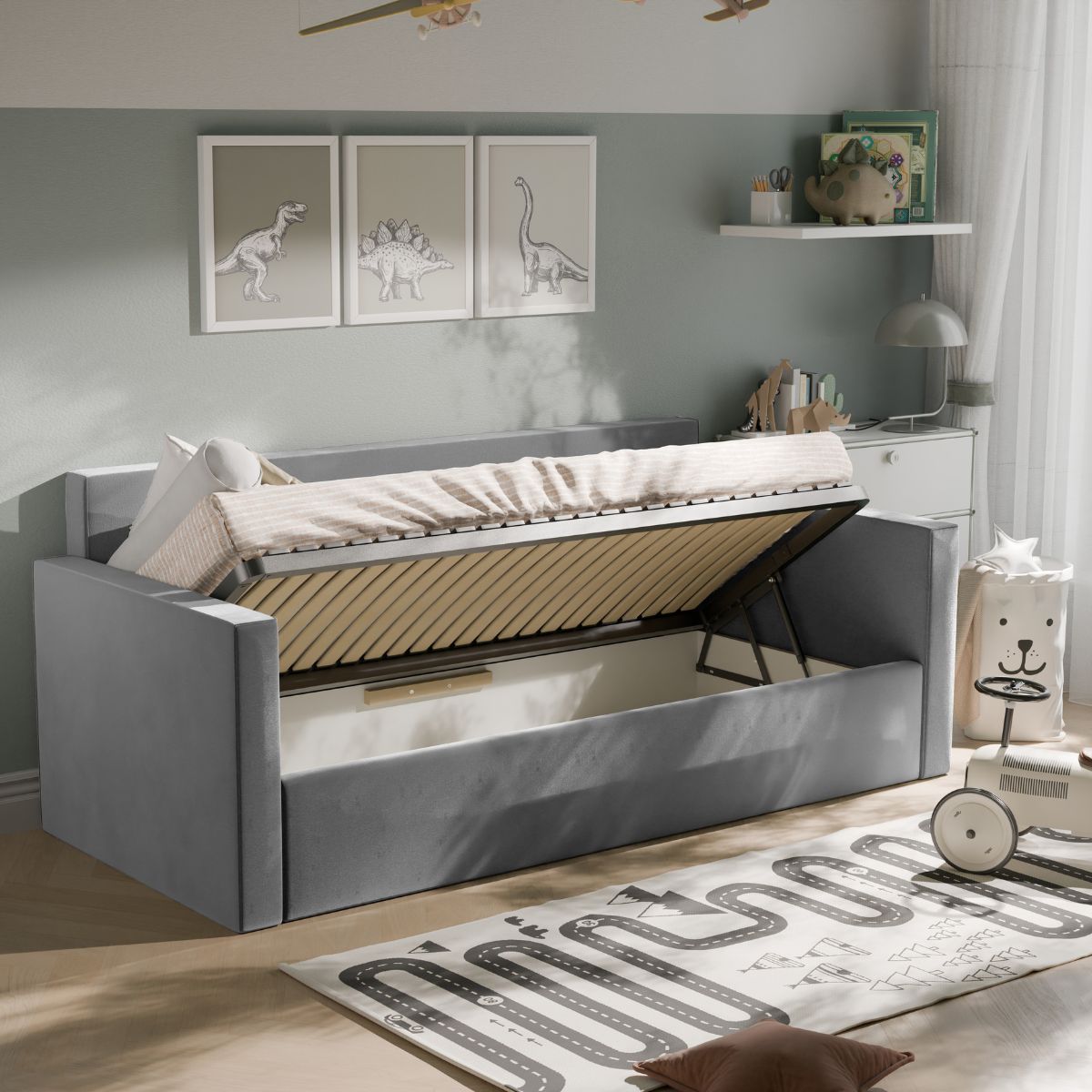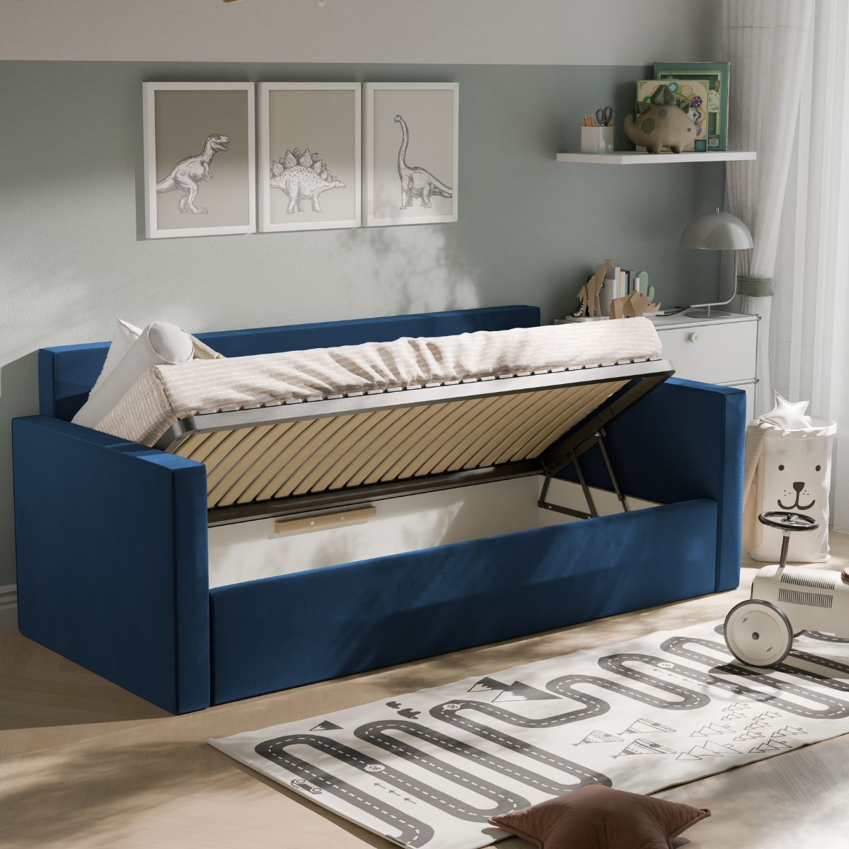 ✅ Funkcjonalność i oszczędność miejsca – kompaktowa forma łóżka z dodatkowymi funkcjami pomaga lepiej zorganizować przestrzeń i utrzymać porządek w sypialni lub pokoju gościnnym.