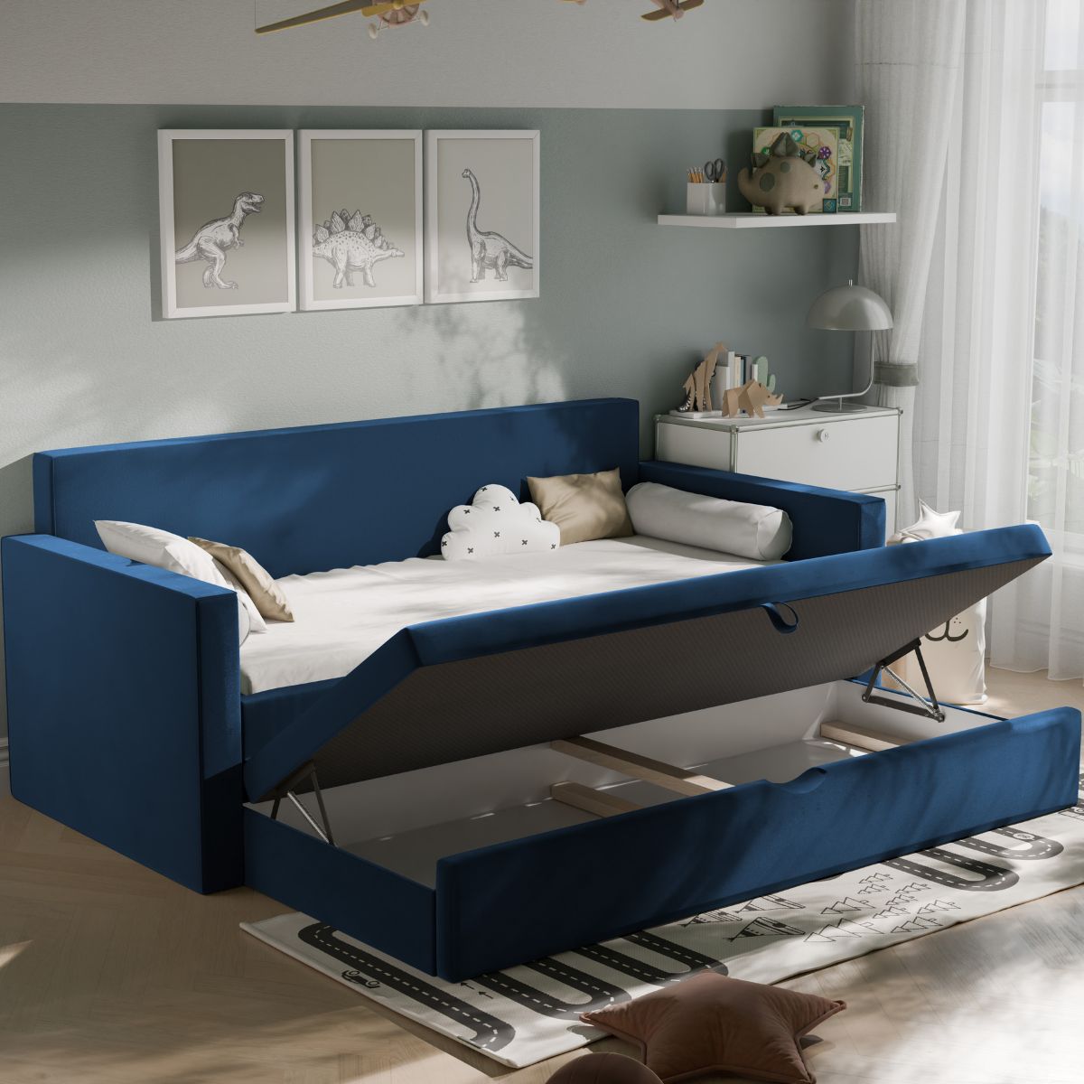 ŁÓŻKO TAPICEROWANE DLA DZIECKA BOB Z DODATKOWĄ POWIERZCHNIĄ DO SPANIA