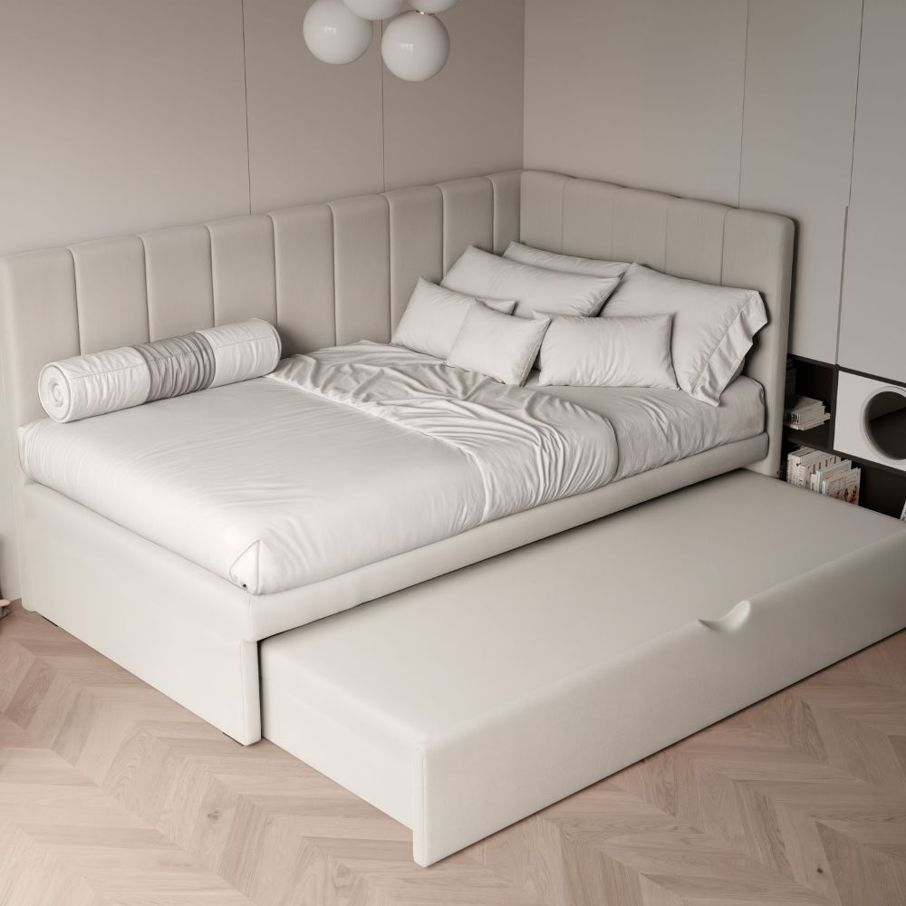 ŁÓŻKO TAPICEROWANE DLA DZIECKA LUCA Z DODATKOWĄ POWIERZCHNIĄ DO SPANIA
