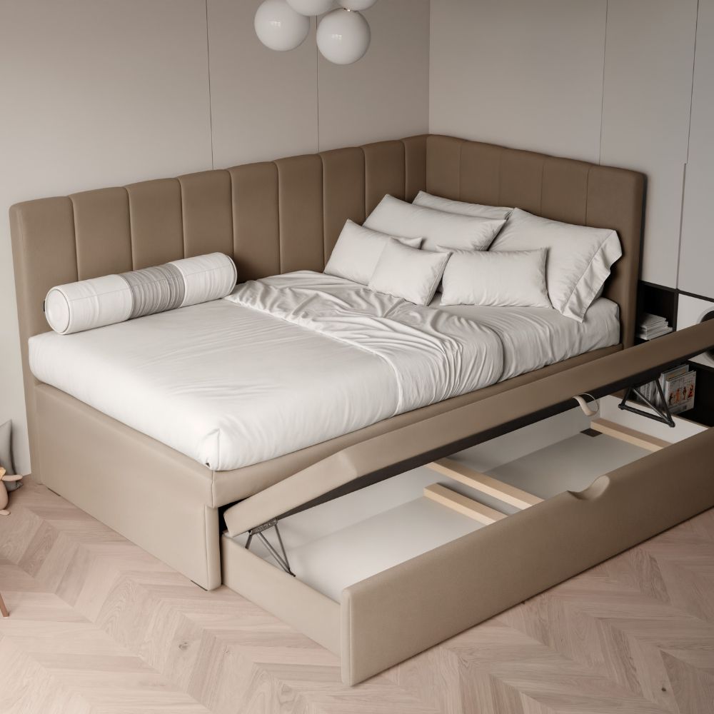 Łóżko tapicerowane Luca – Twój sposób na stylowy i uporządkowany pokój dziecka