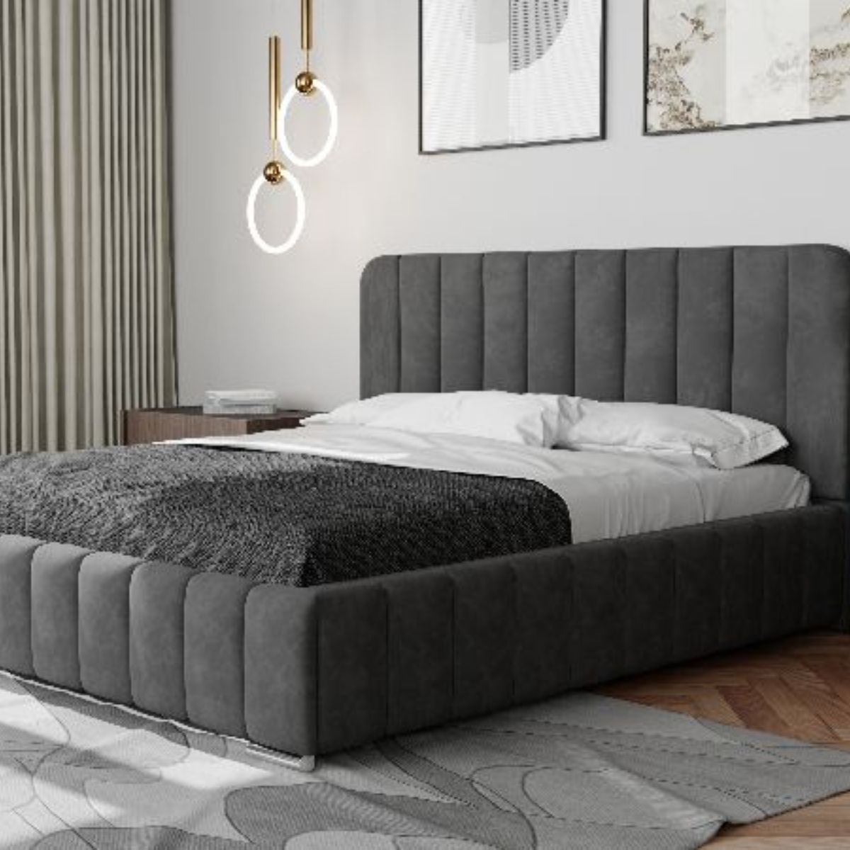 Łóżko tapicerowane młodzieżowe Stormi to eleganckie i nowoczesne rozwiązanie, które wnosi do wnętrza wyjątkowy styl i komfort. Charakterystyczne pionowe przeszycia na całej powierzchni nadają mu subtelnej elegancji, a zaokrąglony zagłówek dodaje lekkości i przytulnego wyglądu.