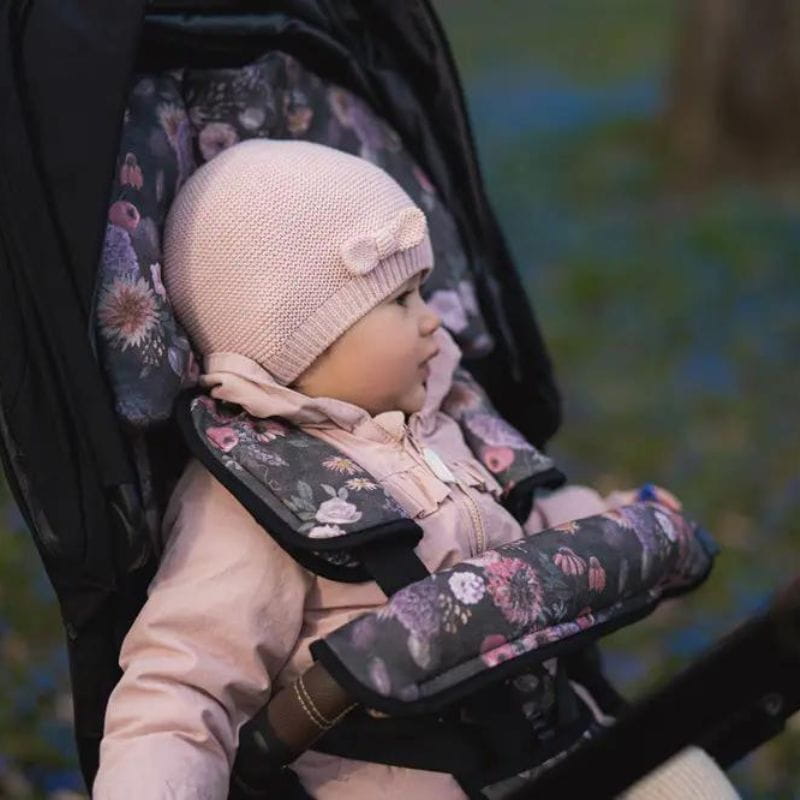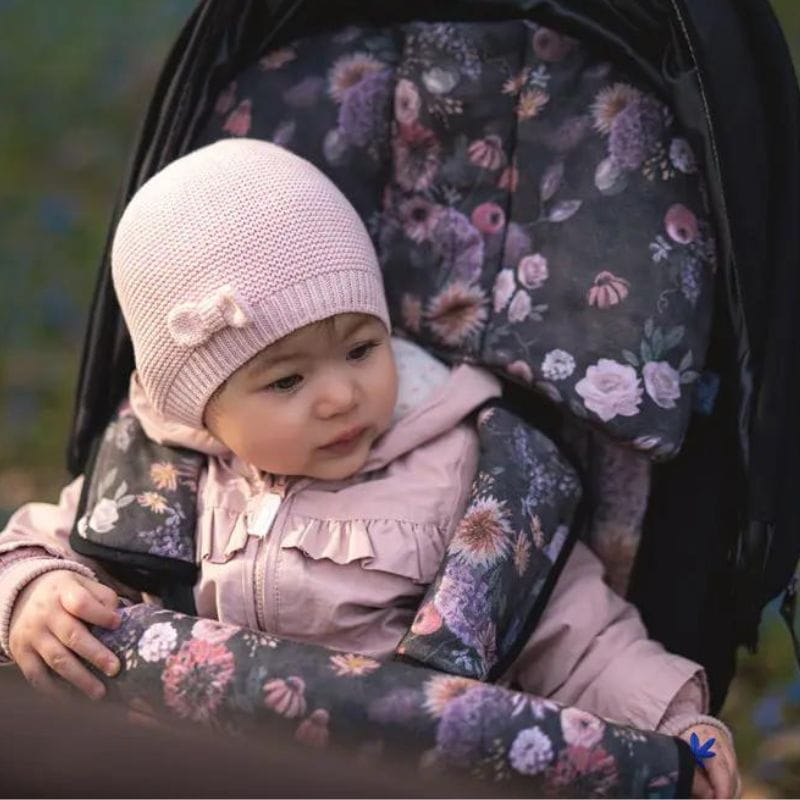 Poduszka doskonale współpracuje ze spacerówkami, a dzięki pętelkom w górnej części możesz łatwo zamontować ją do wkładki do wózka Makaszka, zapewniając pełną wygodę podczas spacerów i podróży z dzieckiem.