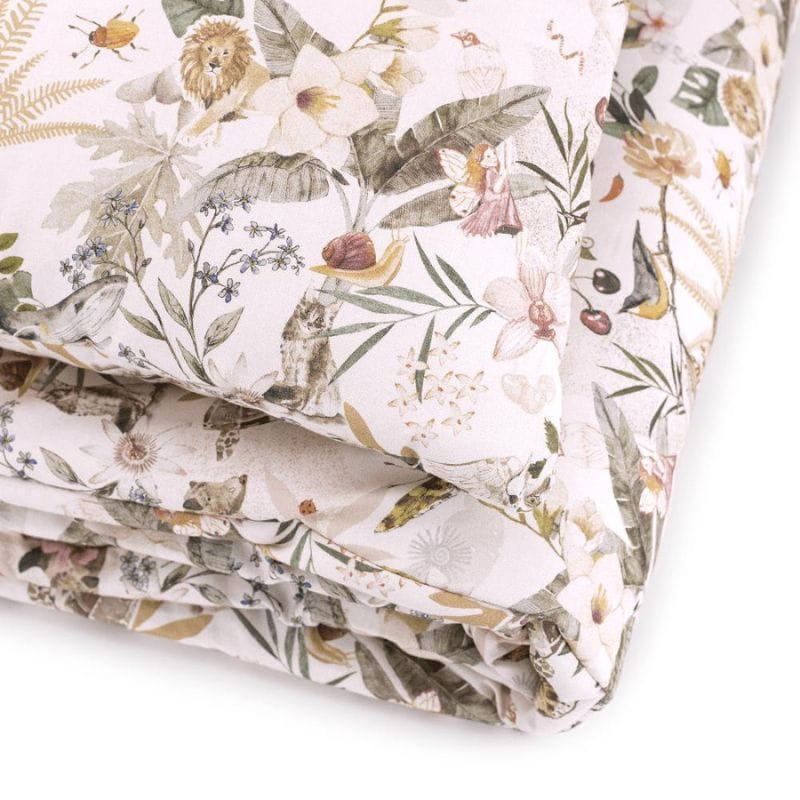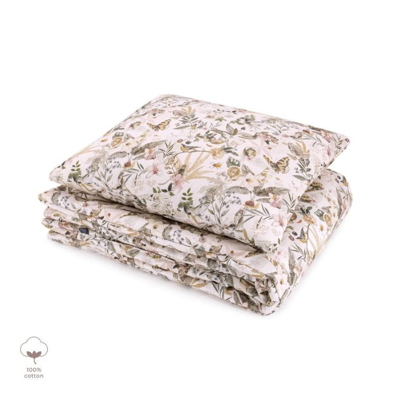 Komplet wykonany jest obustronnie z bawełny najwyższej jakości w starannie dobranych kolorach i wzorach. W środku wypełniony antyalergiczną, lekką, silikonową włókniną zapewniającą ciepło i jeszcze więcej miękkości.