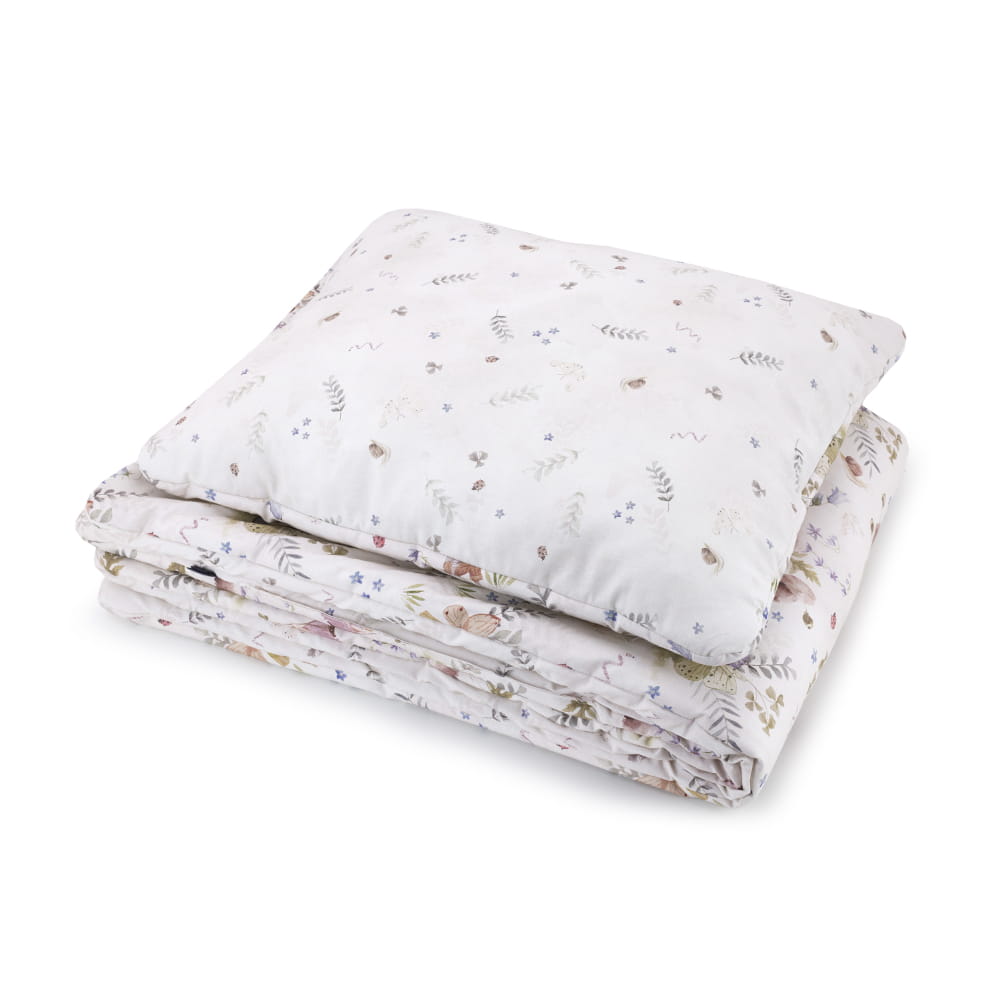 W skład zestawu pościeli dziecięcej Fairies wchodzi puszysta i wygodna poduszka (lub dwie - opcja do wyboru) oraz mięciutka kołderka. Pościel ma wszyte wypełnienie, pierze się ją w całości, a nie tylko jej wierzchnią część, co jest idealnym rozwiązaniem szczególnie dla alergików.