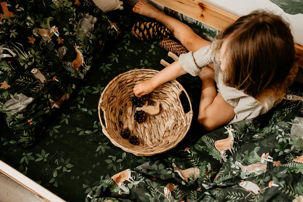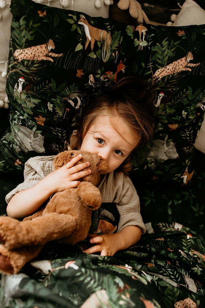 Pościel dziecięcą Makaszka możesz skompletować z innymi produktami z przepięknym wzorem Woodland, tworząc niepowtarzalny, leśny klimat w pokoju dziecka.