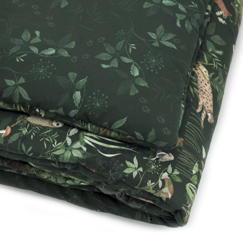 W skład zestawu pościeli dziecięcej Woodland wchodzi płaska i wygodna poduszeczka oraz mięciutka i puszysta kołderka. Pościel ma wszyte wypełnienie, pierze się ją w całości, a nie tylko jej wierzchnią część, co jest idealnym rozwiązaniem szczególnie dla alergików.