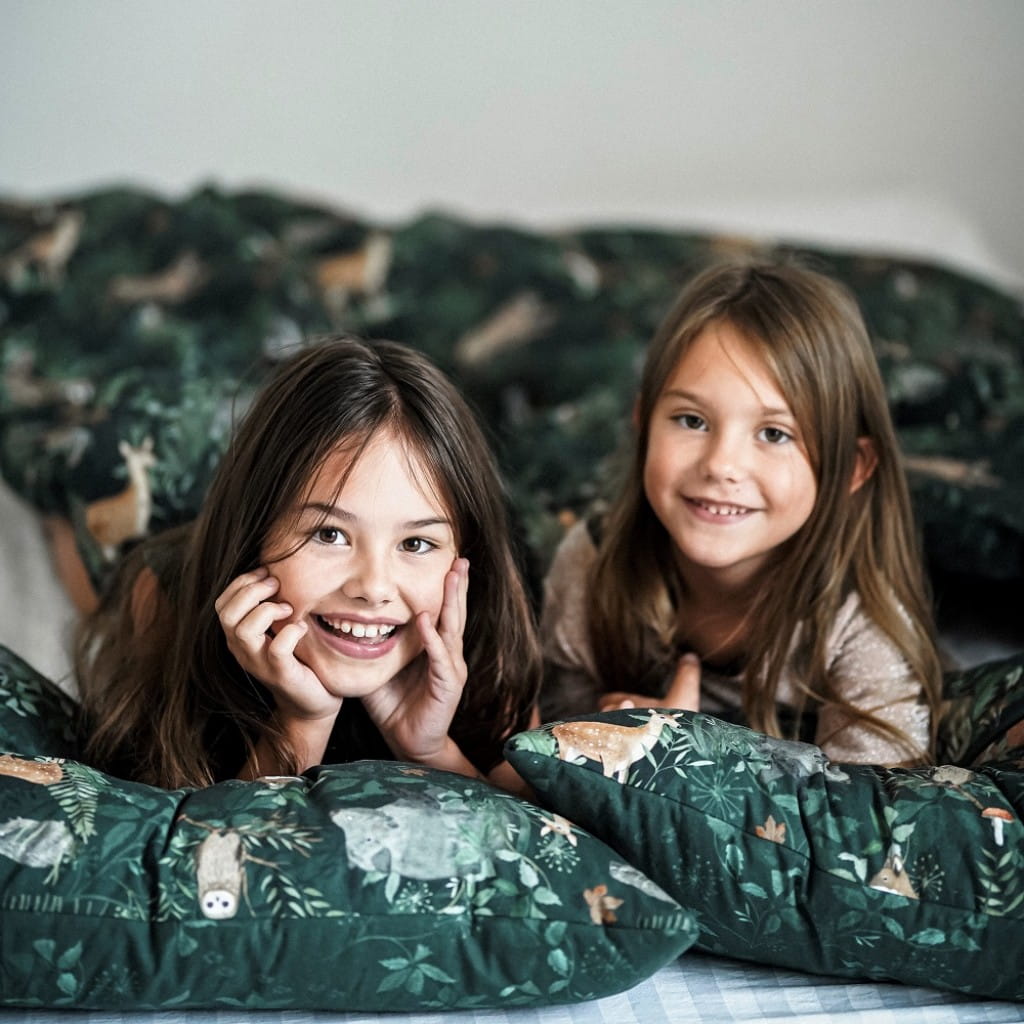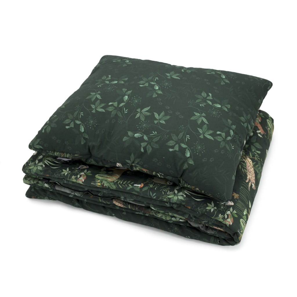 W skład zestawu pościeli dziecięcej Woodland wchodzi puszysta i wygodna poduszka (lub dwie - opcja do wyboru) oraz mięciutka kołderka. Pościel ma wszyte wypełnienie, pierze się ją w całości, a nie tylko jej wierzchnią część, co jest idealnym rozwiązaniem szczególnie dla alergików.